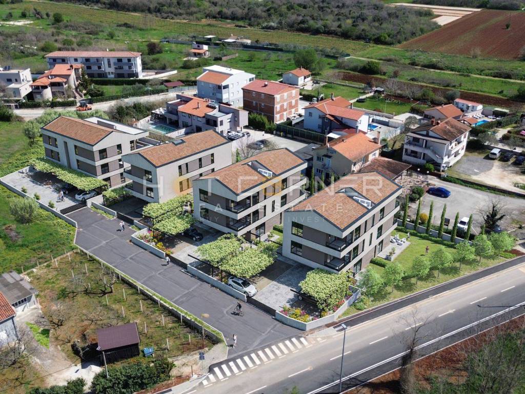 Fažana, in a prime location, near Fažana and well-maintained beaches, construction of 4 residential buildings with a total of 23 residential units is underway, and the construction itself will be of top quality, luxurious and unique by a proven investor. This high-quality and modern apartment will be located on the ground floor of the building, with an area of ​​55.08 m2 with one covered parking space.