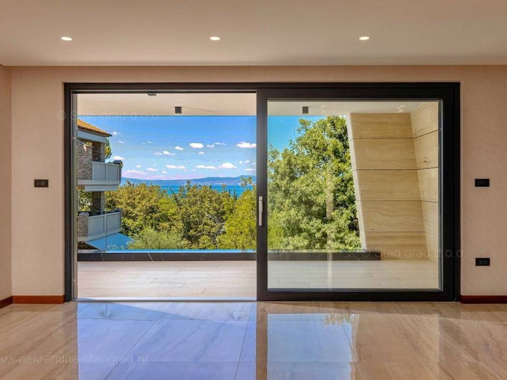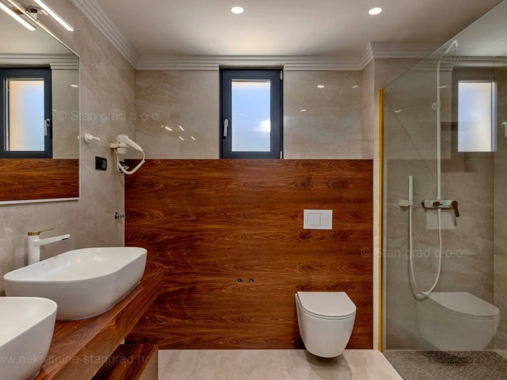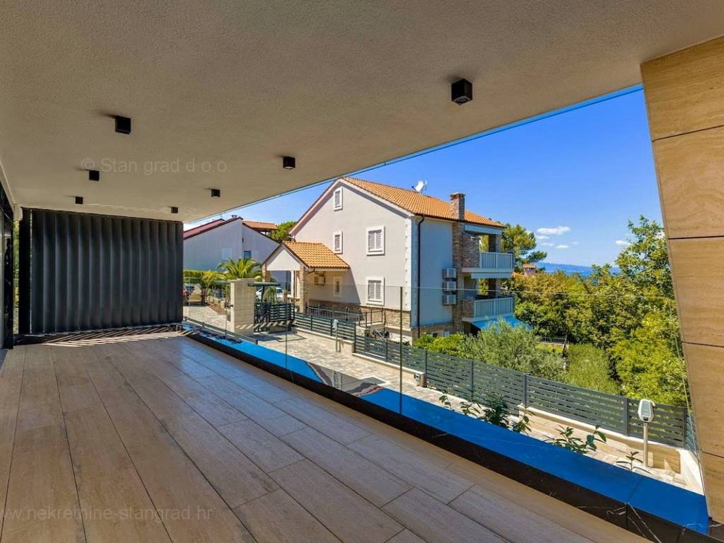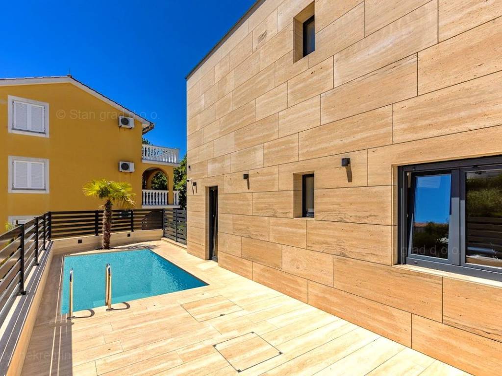 The Stan Grad Immobilien agency is selling an exceptional apartment built according to a modern project in the attractive northern Adriatic area of ​​the Island of Krk. This apartment is located in an excellent and rarely available location very close to the sea and within walking distance of the center of Malinska and key amenities. According to the type, this is a spacious one-story apartment that extends over the entire floor of the building. In a first-class building, the apartment is positioned on the ground floor with a total of three residential units. The total area covered by the apartment is approximately 120 m2. It consists of an entrance area, toilet, bathroom, three bedrooms, of which the master bedroom has its own bathroom, a spacious living room with kitchen and dining area with access to a covered terrace. The interior of the property is fully equipped with the latest designer furniture Mitsubishi air conditioning, underfloor heating, lift-sliding joinery, porcelain ceramics, Dier security doors, walnut interior doors and an external facade of Roman Travertine stone. Within the ownership of the described property, it is worth highlighting the beautifully designed garden, which is given special charm and value by the swimming pool and the arranged relaxation area of ​​approx. 117 m2. The owner of the apartment will have one parking space at his disposal. In addition to the above features, this apartment is very well oriented and offers a beautiful view of the sea and the coast. The property in question is subject to VAT and as such is not subject to sales tax, which specifically exempts the buyer of the apartment from the latter tax obligations. The seller of the property guarantees proper construction and ownership documentation and a quick transfer of the property to the buyer. Our staff will make sure that you feel at home in Kvarner. Visit us on the island of Krk. In addition to a professional tour and presentation of the property and its legal status, the friendly staff of our agency will be happy to assist the buyer of the property in transferring ownership rights and transferring utility bills to their name.