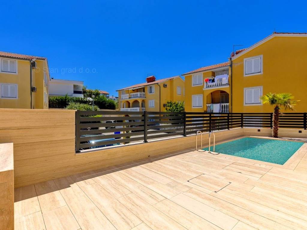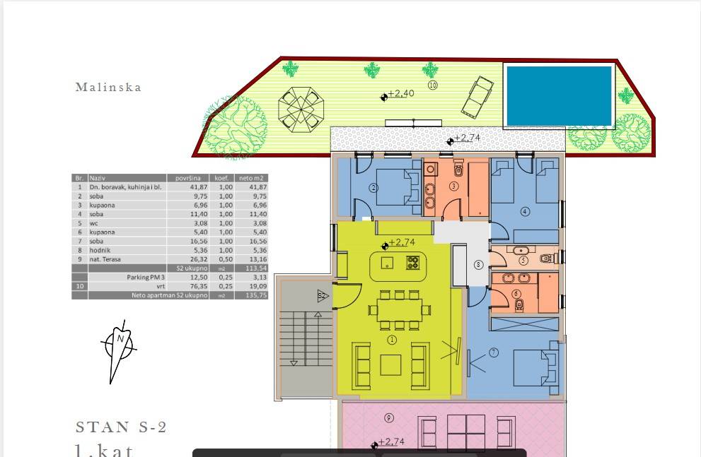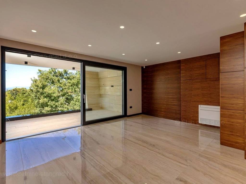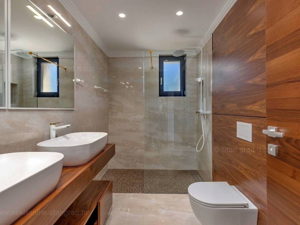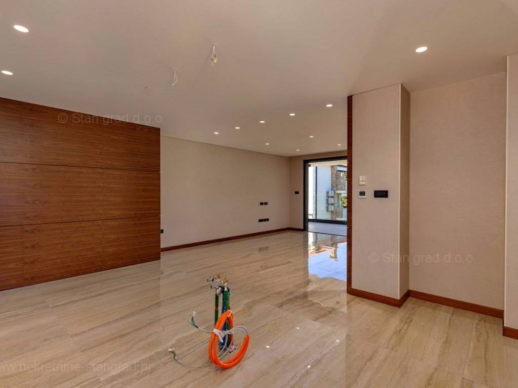The Stan Grad Immobilien agency is selling an exceptional apartment built according to a modern project in the attractive northern Adriatic area of ​​the Island of Krk. This apartment is located in an excellent and rarely available location very close to the sea and within walking distance of the center of Malinska and key amenities. According to the type, this is a spacious one-story apartment that extends over the entire floor of the building. In a first-class building, the apartment is positioned on the ground floor with a total of three residential units. The total area covered by the apartment is approximately 120 m2. It consists of an entrance area, toilet, bathroom, three bedrooms, of which the master bedroom has its own bathroom, a spacious living room with kitchen and dining area with access to a covered terrace. The interior of the property is fully equipped with the latest designer furniture Mitsubishi air conditioning, underfloor heating, lift-sliding joinery, porcelain ceramics, Dier security doors, walnut interior doors and an external facade of Roman Travertine stone. Within the ownership of the described property, it is worth highlighting the beautifully designed garden, which is given special charm and value by the swimming pool and the arranged relaxation area of ​​approx. 117 m2. The owner of the apartment will have one parking space at his disposal. In addition to the above features, this apartment is very well oriented and offers a beautiful view of the sea and the coast. The property in question is subject to VAT and as such is not subject to sales tax, which specifically exempts the buyer of the apartment from the latter tax obligations. The seller of the property guarantees proper construction and ownership documentation and a quick transfer of the property to the buyer. Our staff will make sure that you feel at home in Kvarner. Visit us on the island of Krk. In addition to a professional tour and presentation of the property and its legal status, the friendly staff of our agency will be happy to assist the buyer of the property in transferring ownership rights and transferring utility bills to their name.