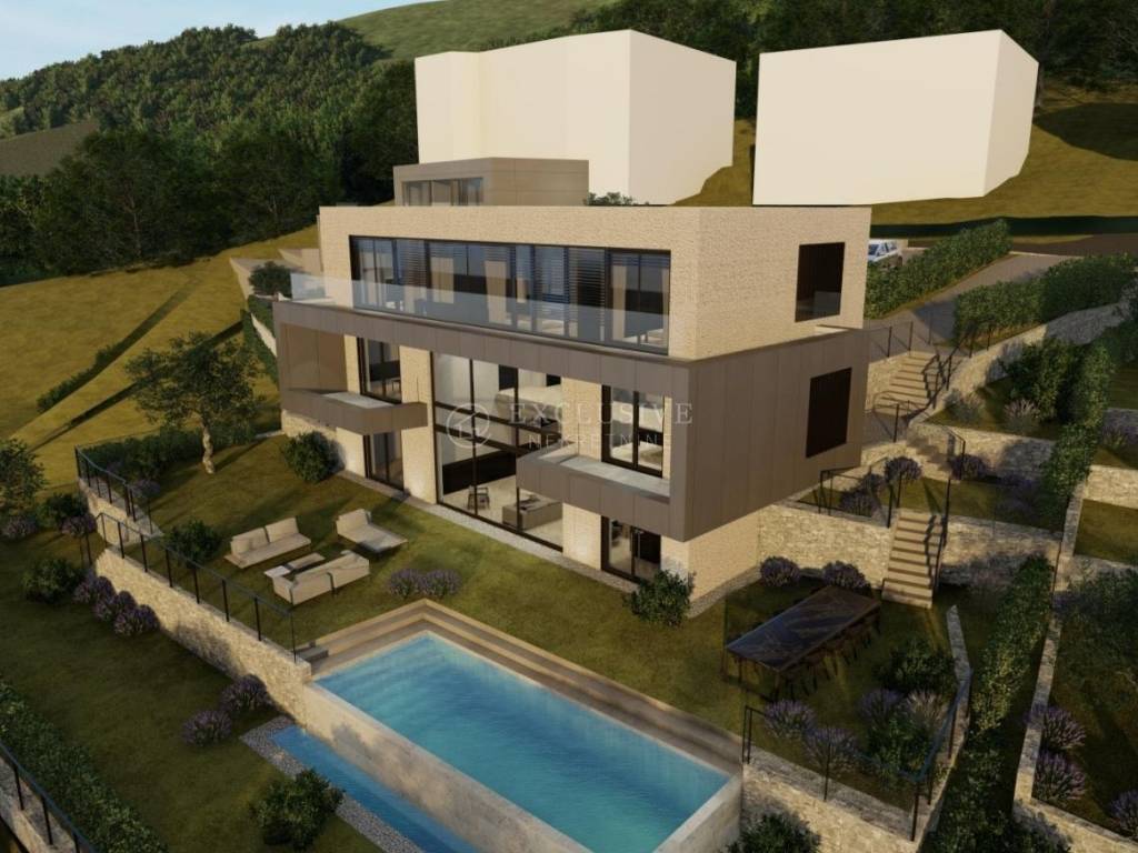 OPATIJA - u prodaji je građevinsko zemljište od 1008 m2 s građevinskom dozvolom, jugoistočne orijentacije s prekrasnim pogledom na more. Zemljište se prodaje s projektom za samostojeću vilu S +P+1 bruto površine 432m2 i s infinity bazenom. Lokacija zemljišta je idealna za miran život okružen zelenilom a opet nadomak centra Opatije i mora, svega 10ak minuta pješice.