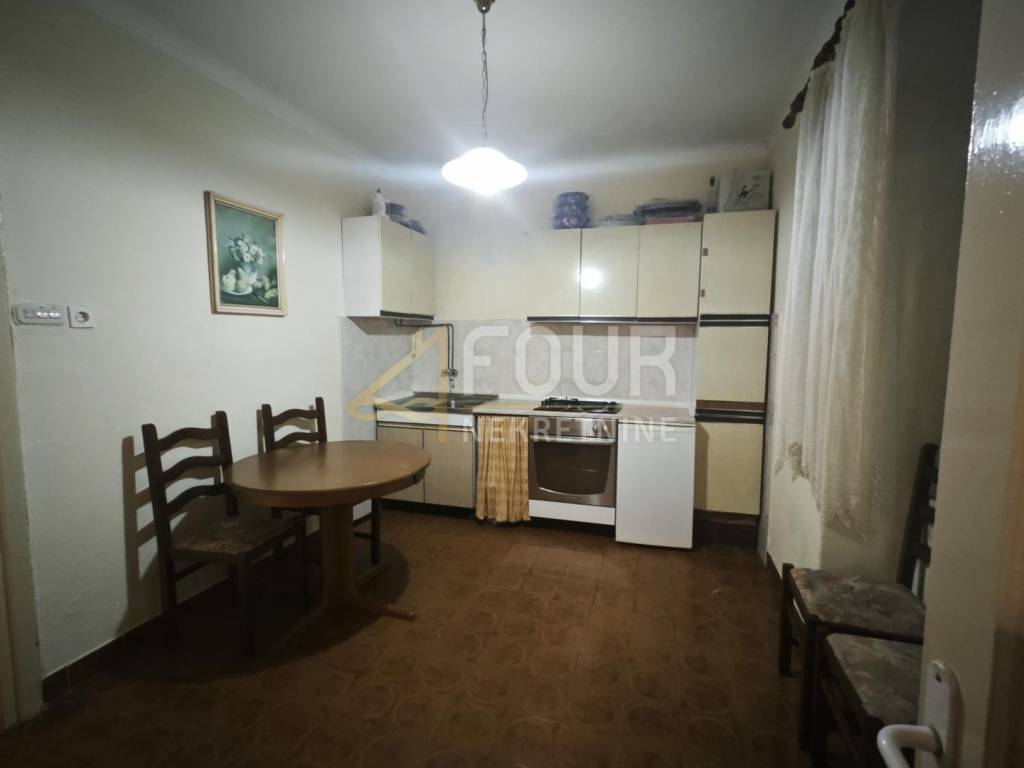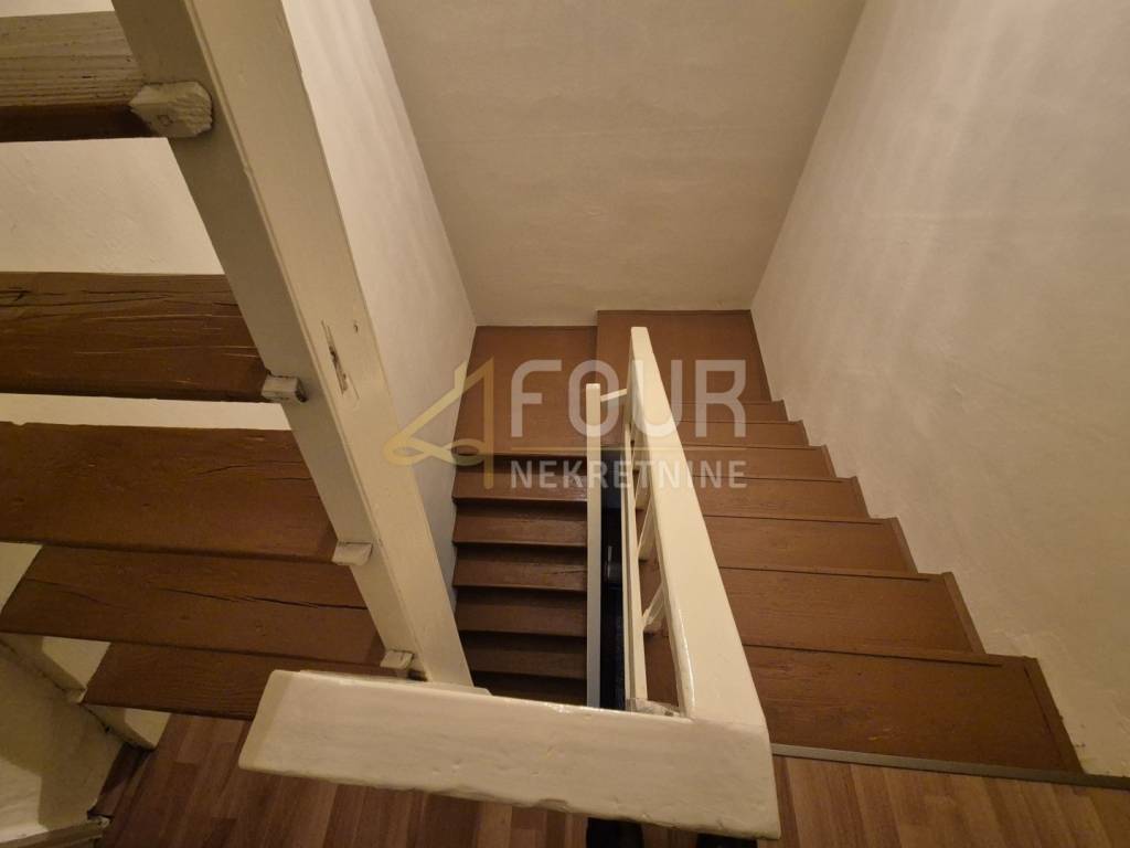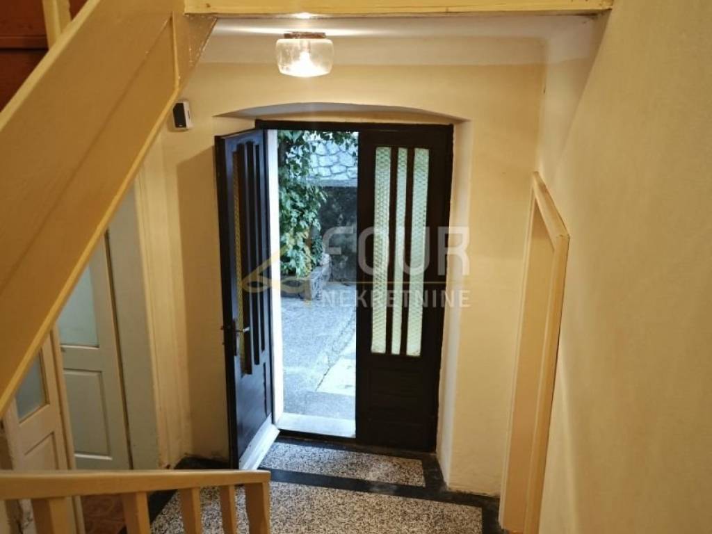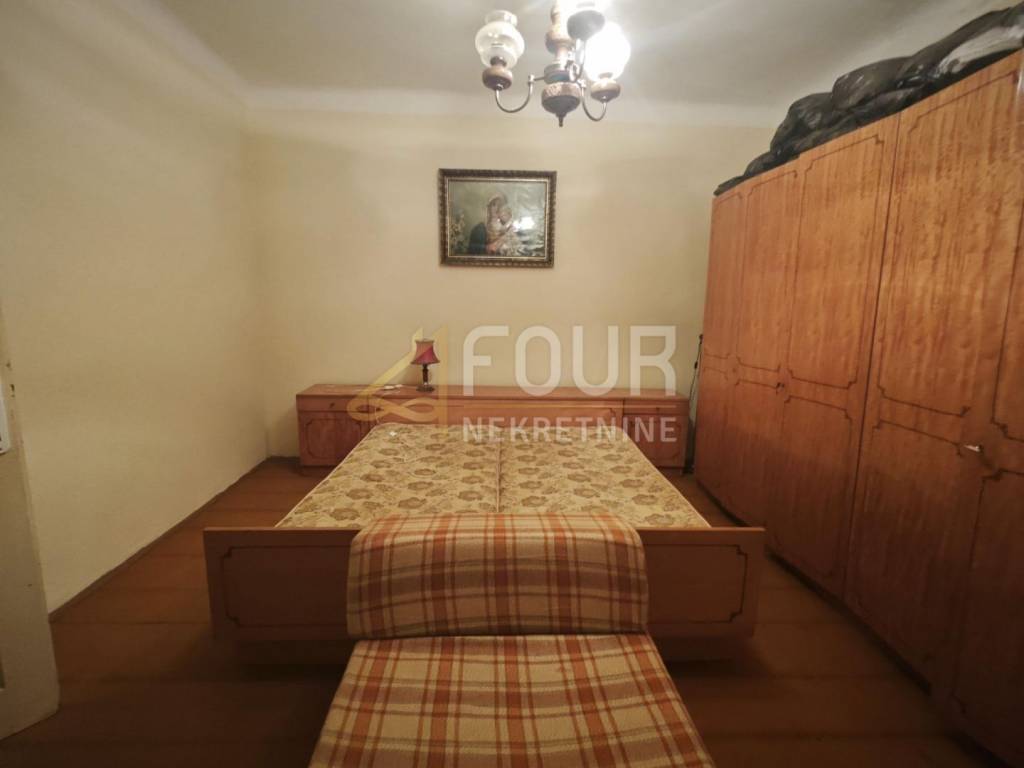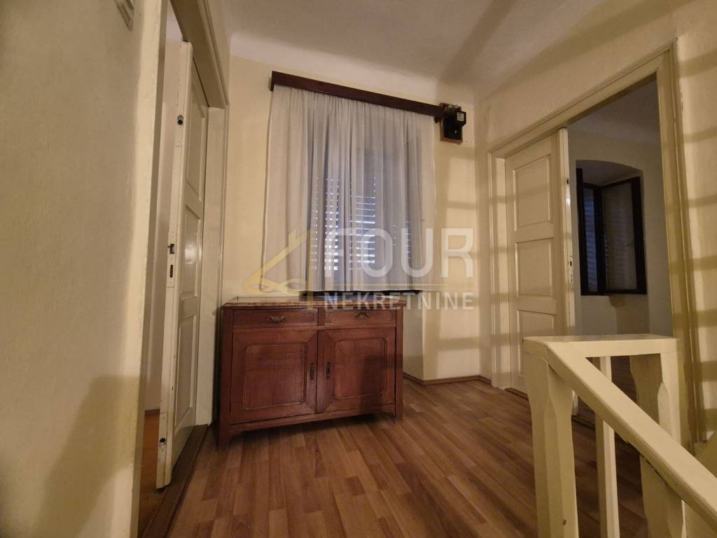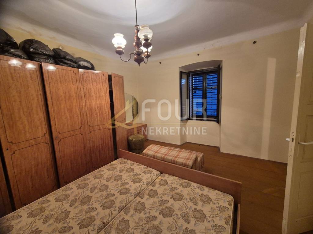 A detached house is for sale in Križišće, situated in a quiet environment that offers privacy and the possibility of a pleasant living or investment. The house consists of a ground floor and first floor, with a total area of ​​approximately 110 m2, and includes a spacious garden of about 1300 m2 and a garage. The building was constructed before 1968 and is intended for renovation, giving the future owner the freedom to design according to their own taste. The windows are wooden, and there are two practical storage rooms behind the house. The layout of the rooms includes a living room, entrance hall, kitchen, and bathroom on the ground floor, while on the first floor there are two bedrooms and access to the attic. Adjacent to the house are two building plots, which open up additional possibilities for expansion or new construction, making the entire complex particularly interesting for investors. The property can be purchased as a whole or separately.