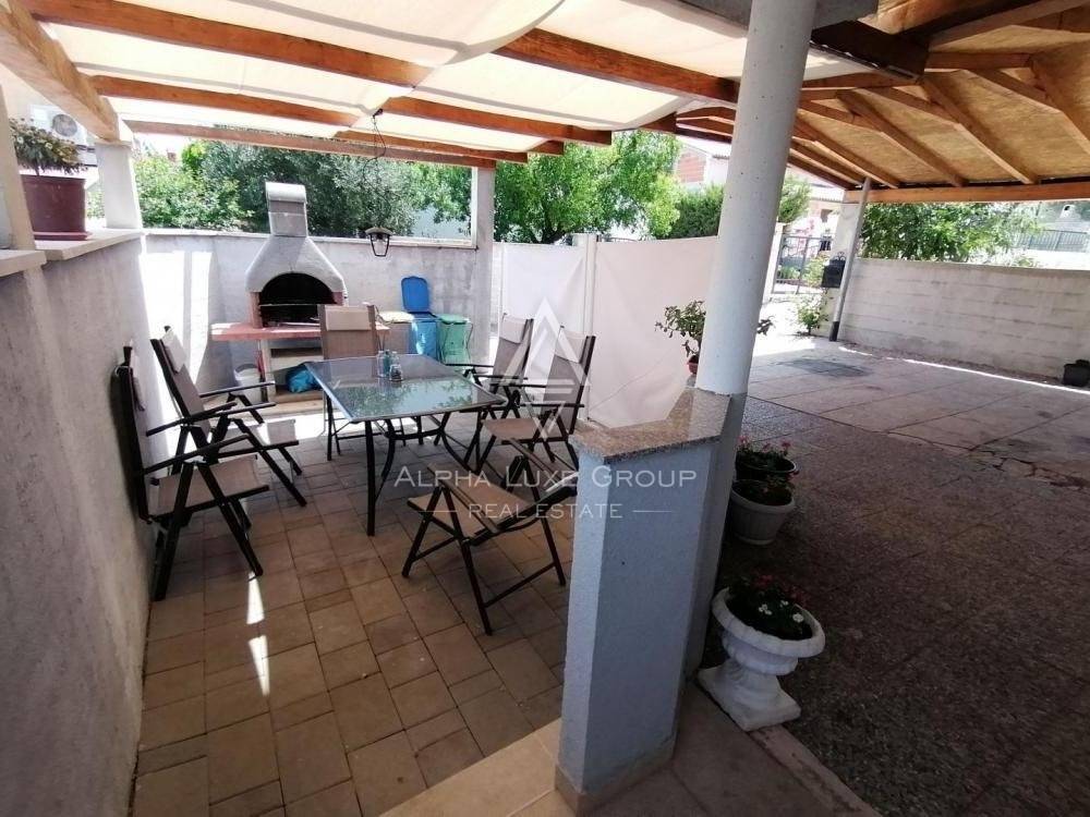 A table with chairs, a barbecue, and two covered parking spots are located in the yard of the residence. Air conditioning keeps the space cool, and central heating is utilized for comfort.