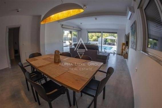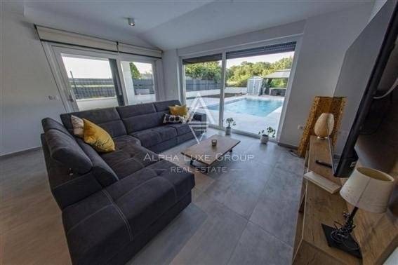 This house consists of two residential units that are divided by floors. The apartment on the ground floor spreads over 104.88m2. It has a guest bathroom on the first floor, an open concept with a kitchen, dining area, and living area with access to the sun deck and pool. Three bedrooms and a bathroom are available in the apartment.