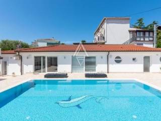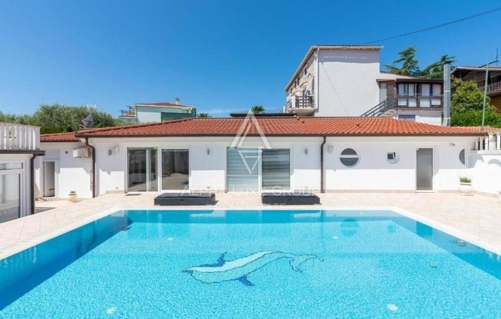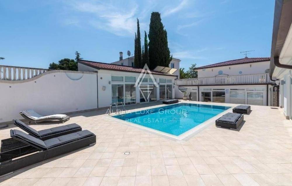 This beautiful villa is located on a plot of 730 m2 and has a living area of 450 m2 with an outdoor pool with salt water, two apartments, terraces, a barbecue, and private parking.