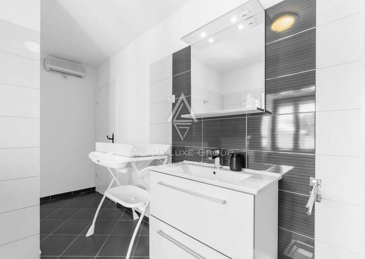 The second house, covering 120 m², includes a kitchen and dining area on the first floor, alongside a versatile playroom. The second floor is home to two bedrooms, each offering the luxury of an en-suite bathroom.