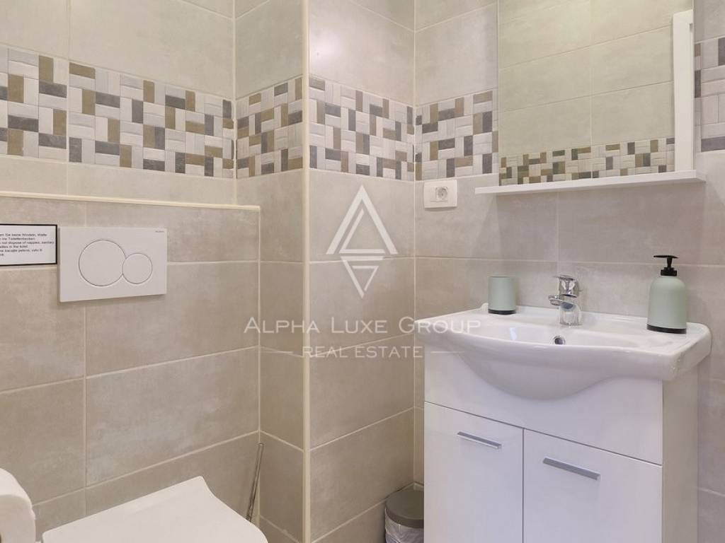 The villa is nestled within a 770m2 plot, boasting a 33m2 swimming pool and a covered summer kitchen and dining area, perfect for al fresco family dining with a grill and views of the lush greenery. The property also features a covered parking space for three vehicles.