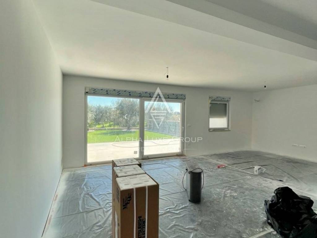 Discover a perfect blend of comfort and tranquility in this contemporary ground-floor apartment in Novigrad, nestled among olive groves and lush greenery. Located just 1,900 meters from the sea and a well-maintained beach, and 2,300 meters from the vibrant city center, this 86 m² residence offers a well-designed living space ideal for both permanent living and investment purposes.
