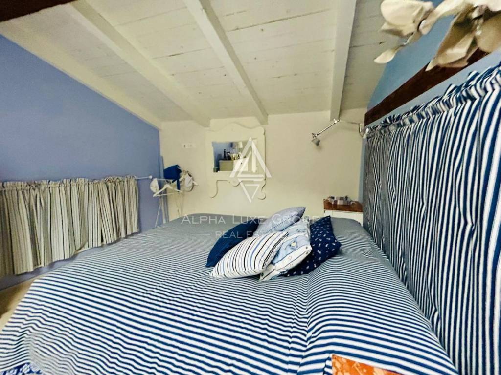 An internal staircase leads to the first floor, where you’ll find a versatile living space that can function as a lounge, reading nook, or office, with direct access to another terrace offering spectacular panoramic sea views. Additionally, this floor includes a comfortable bedroom and a contemporary bathroom.