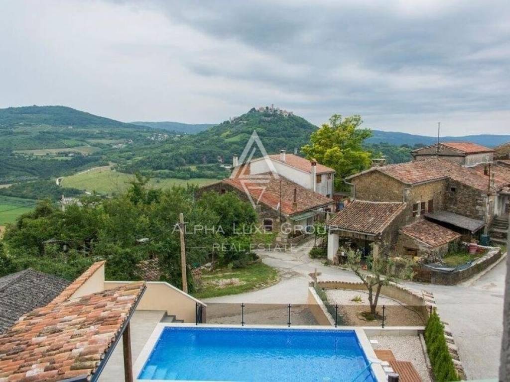 Discover a piece of authentic Istrian heritage in a quaint village near the historical town of Motovun. This charming stone house, set on a 250 m2 plot, spans 150 m2 over two floors. It features an inviting entrance hall, a cozy living room, a kitchen with dining area, 3 bedrooms, and 3 bathrooms. The living area opens up to a meticulously maintained garden, which boasts a covered terrace with a barbecue area and a swimming pool surrounded by a sunbathing terrace. Equipped with air conditioning for both heating and cooling, and a traditional chimney, this house combines modern comfort with rustic charm.