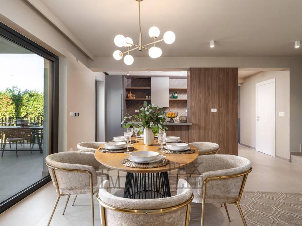 For optimal comfort, the villa is equipped with a heat pump, floor heating, and individual air conditioning units in every room. It is being offered for sale fully furnished and equipped, allowing a new owner to immediately move in and live in luxury and sophistication.