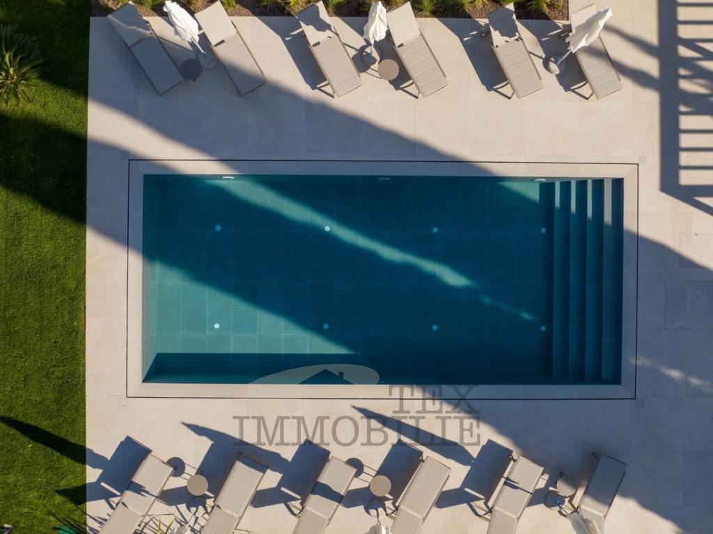 This villa is equipped with video surveillance, and furnished with opulent Italian furniture and exquisite decorations. The bathrooms are adorned with luxurious Catalano sanitary, exemplifying a commitment to the highest quality standards.