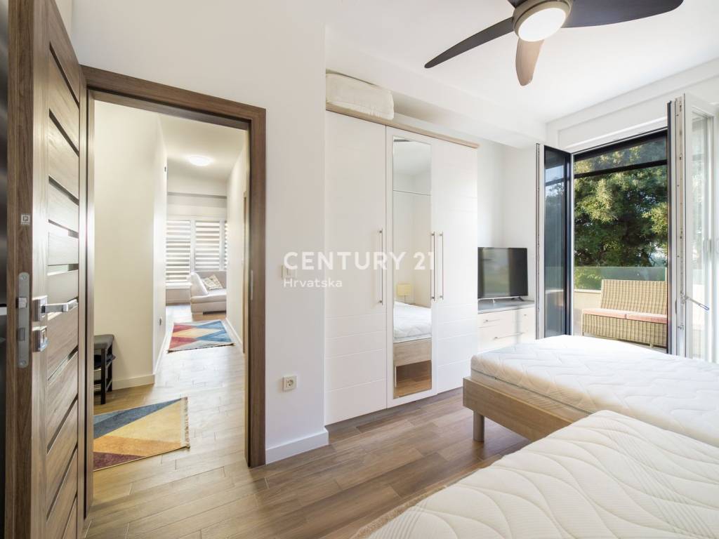 Stan se prodaje potpuno namješteni i opremljeni sa krevetima u spavaćim sobama, ormarima u sobama, opremljenom kupaonicom sa tuš kabinom i perilicom rublja, kuhinjom sa ugradbenim uređajima, hladnjakom sa ledenicom, blagovaonskim stolom i stolicama, sjedećom garniturom i TV komodom u dnevnom dijelu, te vrtnom garniturom na balkonu.