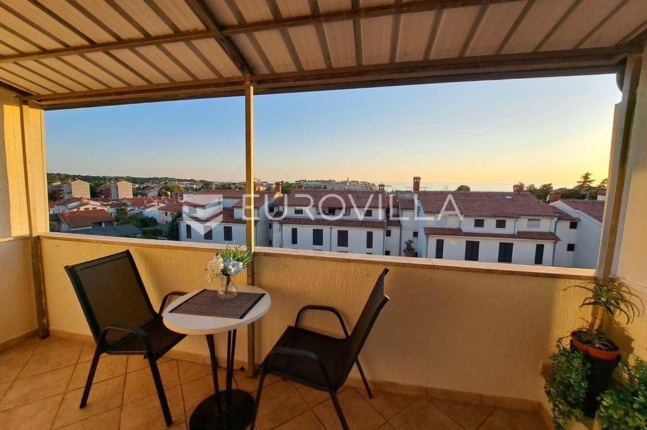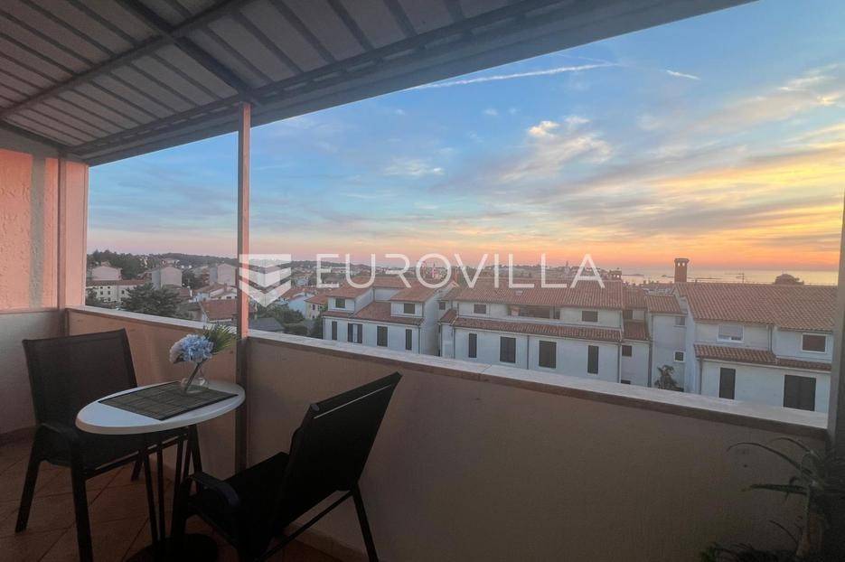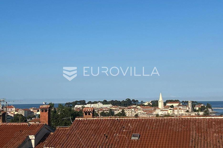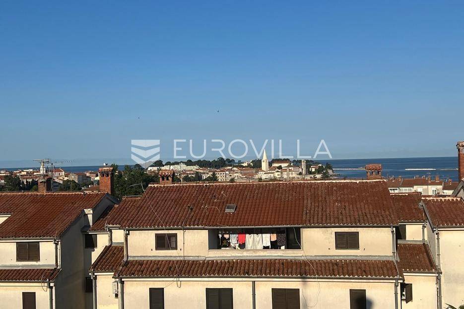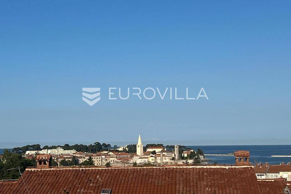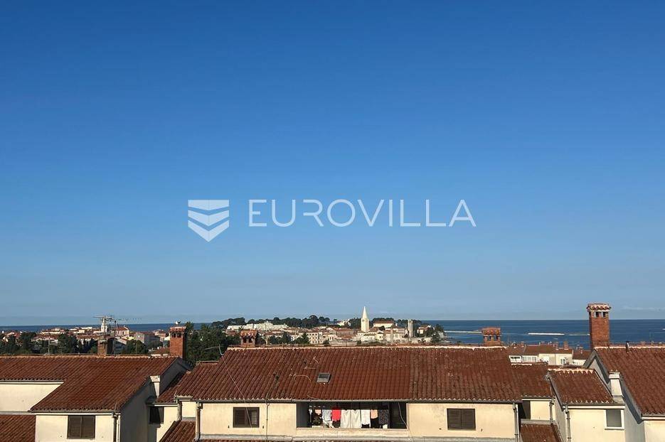 U Poreču, 300 metara od plaže, nalazi se trosoban stan na 4. katu.Stan se sastoji od 3 spavaće sobe, kupaonice, galerije koja može poslužiti kao dodatna spavaća soba ili ostava, kuhinje, blagovaonice i dnevnog boravka s izlazom na balkon s panoramskim pogledom na more i grad Poreč.Grijanje i hlađenje na klime, s obzirom na dimnjak, mogućnost grijanja na peć na drva ili pelet.