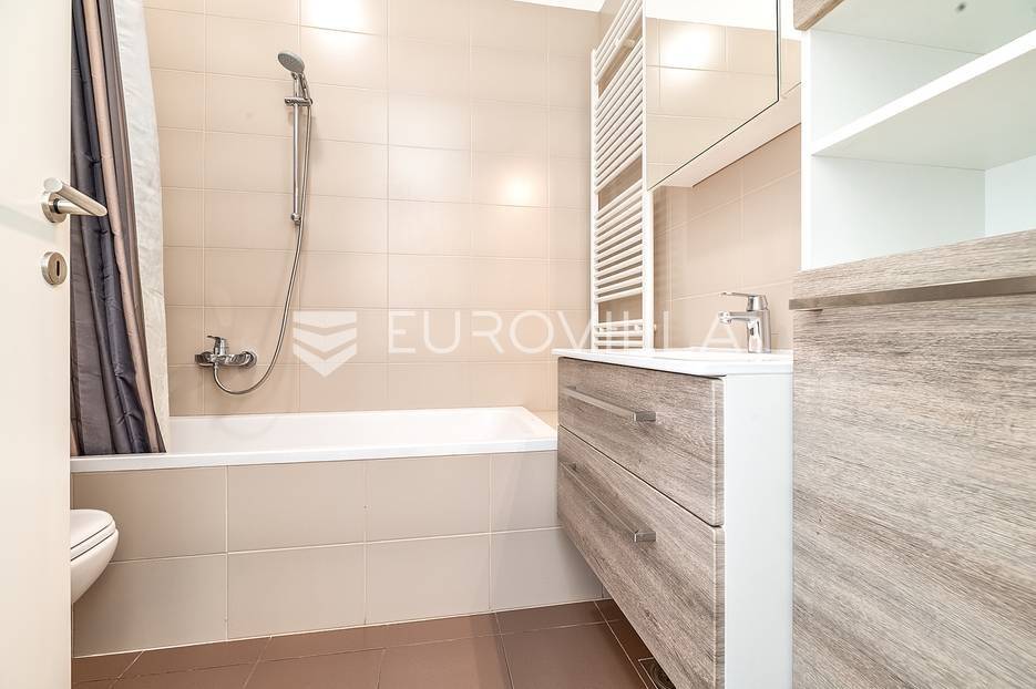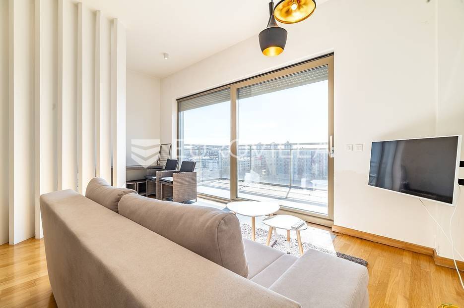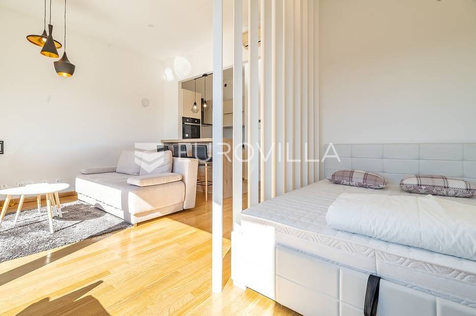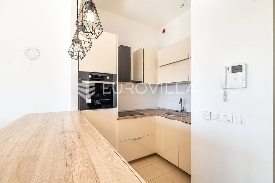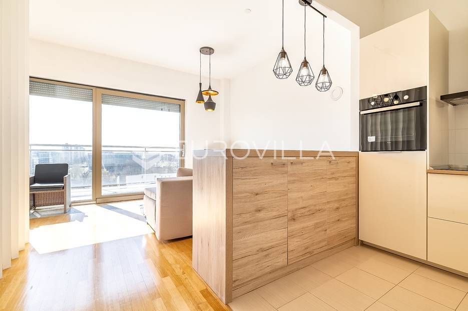 Bundek centar, Središće, novije građen poslovno stambeni kompleks. Dvosoban stan zatvorene površine 30 m2 s terasom (2,51m2) na sedmom katu s liftom.Ulazni hodnik, dnevni boravak s kuhinjom, blagovaonicom i spavaćom sobom, terasa te kupaonica s kadom. Protuprovalna vrata, klima, grijanje na toplanu. Orijentacija jug. Stan je potpuno namješten i opremljen.Mikrolokacija: u zgradi se nalazi Konzum, dječji vrtić, college RIT Croatia, Vincek, restoran, nekoliko kafića i specijaliziranih trgovina, teretana, poliklinika Breyer, stomatolog, dermatolog, autopraonica u podzemnoj garaži, blizina škole, tramvaja, autobusa, park s jezerom Bundek udaljen 50 metara, odlična prometna povezanost sa svim dijelovima grada, autocestom i zračnom lukom, nekoliko minuta vožnje do centra grada, blizina nekoliko trgovačkih centara, tržnice, kina, muzeja, bazena, klizališta i ostalih sportskih sadržaja.Ostale informacije na upit.