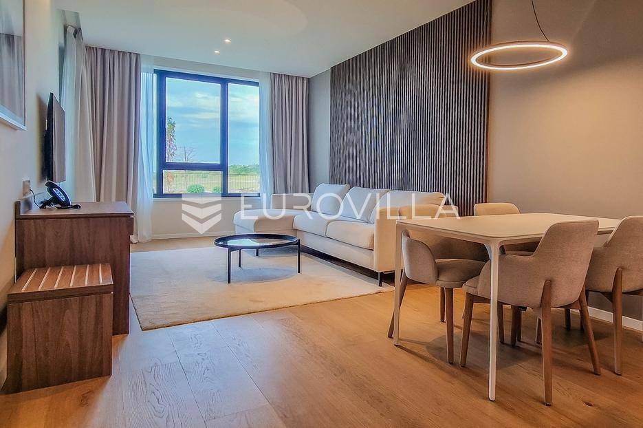Ovaj moderni dvosobni stan nalazi se tik do mora, u Savudriji u luksuznom kompleksu koji pruža relaksaciju i odmor.Stan se sastoji od hodnika, jedne spavaće sobe,kupaonice,dnevnog boravka s blagovaonicom i kuhinjom, WC-a, te mu pripada i parkirno mjesto. Visoki standardi gradnje osiguravaju maksimalnu privatnost i nesmetan odmor za vas i sve oko vas.Na raspolaganju su sve usluge luksuznog resorta - sportski tereni, bazeni, teretana, plaža, dječji kutak i igralište, razne trgovine, SPA centar, concierge i recepcija.Hotel nudi opciju "rent a pool" uz unaprijed dogovorene godišnje uvjete.Stan je u privatnom vlasništvu.Za sve ostale informacije stojimo Vam na raspolaganju.