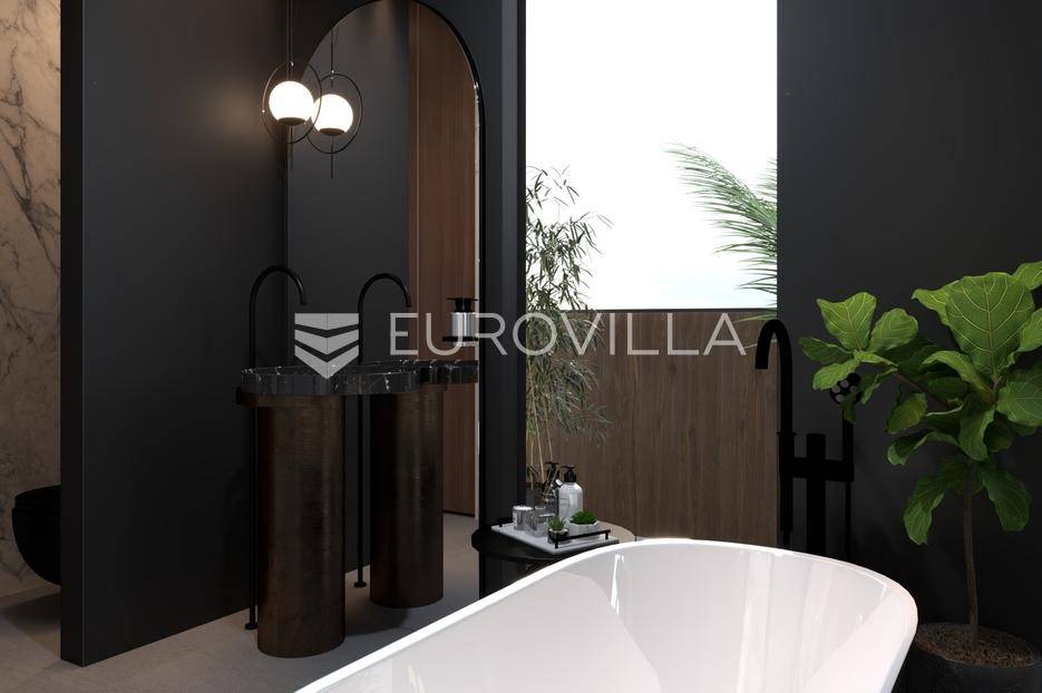 Trosoban stan zatvorene površine 101,34 m2 smješten na 1. Katu. Sastoji se od ulaza, kuhinje, dnevnog boravka s blagovaonicom, hodnika, wc-a, 2 kupaone, spavaće sobe, roditeljske sobe te garderobe. Pripadaju mu garažno parkirno mjesto te natkrivena terasa. Ukupno obračunski NKP 107,95 m2. O projektu: Jedinstven stambeni koncept koji utjelovljuje inovativnu arhitekturu na vrhunskoj lokaciji. Elegantni I bezvremenski standardi smart livinga unutar same rezidencije s pravom udobnošću doma i energetskom učinkovitošću, te okolišem koji poboljšava čovjekovu kvalitetu života. Okruženi ste elegancijom, iznutra i izvana, a sa svake terase se pruža pogled na prekrasan i miran Kvarnerski zaljev. U prodaji su luksuzni stanovi u modernoj novogradnji nadomak Voloskog i Opatije, odakle se pruža jedinstveni pogled na cijeli Kvarnerski zaljev. Predviđene stambene građevine će svojom arhitekturom formirati unikatnu i prirodi prilagođenu strukturu. Svaki od ukupno pet objekata se sastoji od četiri nadzemne etaže — na kojima je smješteno ukupno sedam prostranih stanova visokog standarda i opremljenosti, kao i njihovi prateći sadržaji ( bazen, jacuzzi, gym i spa, vinski podrum ). Na podrumskoj etaži su predviđena garažna mjesta, za svaku stambenu jedinicu po dva parkirna mjesta te spremišta, kao i zajednički prostori gym- a i spa zone. Sve etaže su povezane liftom. Stanovi su veličine od 140 do 250 m2 uključujući terase. Svi su južno orijentirani, i s atraktivnim panoramskim pogledom na more. Ova stambena rezidencija nudi i vlastiti servis usluga i održavanje objekata kao i vlastitog domara. Udaljenost zemljišta do centra grada Voloskog i plaže te stare jezgre iznosi cca. 500m, odnosno 10 minuta lagane šetnje, uključujući sve potrebne javne sadržaje, kao što su: pošta, ljekarna, restorani, zdravstvena ustanova, i sl., dok je prva veća trgovina udaljena cca. 200 m. Kreiranje interijera je direktnim uvođenjem prirodnih boja i vječne elegancije u životni prostor. Arhitektura i interijer ovdje nastaju kao posljedica spajanja čovjeka i prirode, stvarajući neraskidivu nit. Glavna vodilja je da se čovjek može slobodno i lagodno kretati u prostoru, u svojoj individualnoj prirodnoj sredini. Planirani završetak radova tijekom 2025. godine. Za sva pitanja Vam stojimo na raspolaganju.