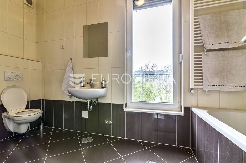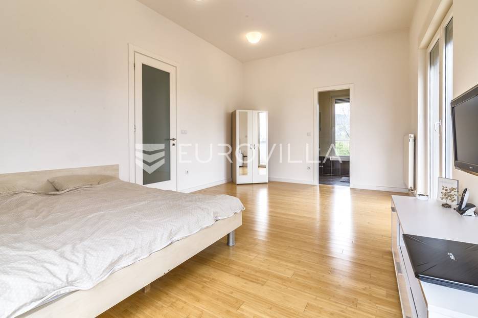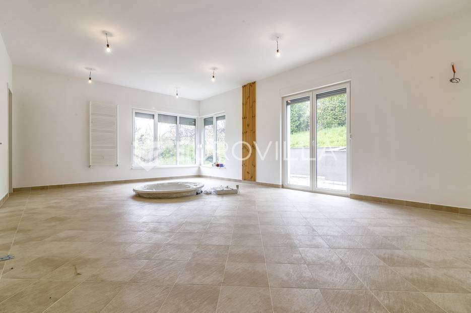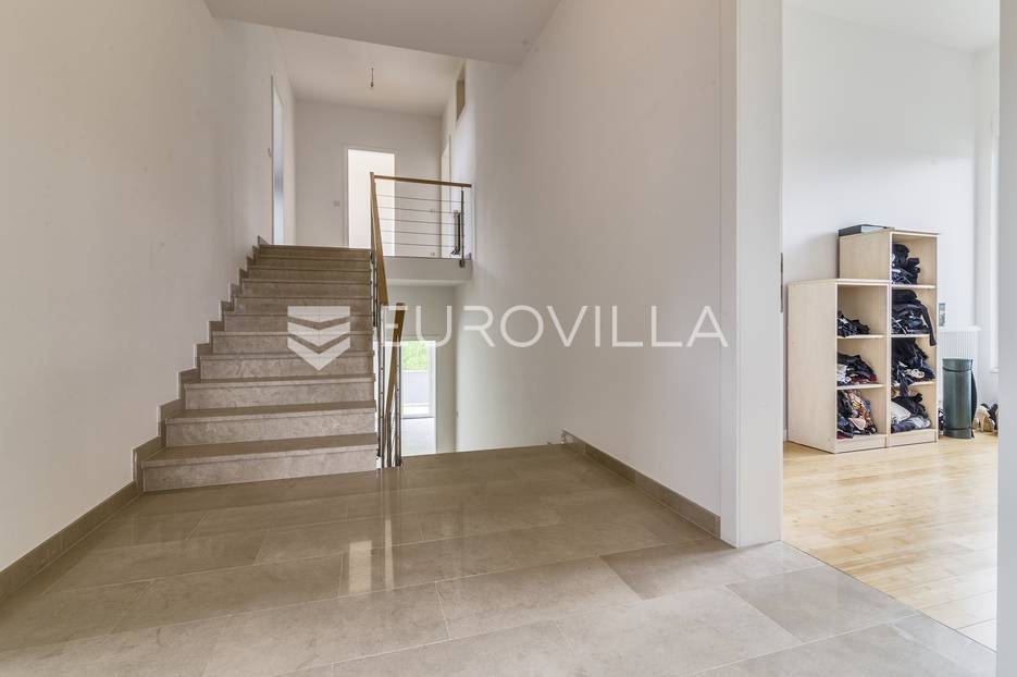 Prekrasna sedmerosobna kuća površine 400m2 izgrađena 2016. godine. Sastoji se od pet etaža. Prva etaža: garaža za 2 auta, parkirna mjesta za 10 auta, ostava i kotlovnica. Druga etaža: glavni ulaz, dnevni boravak, blagovaonica, terasa, gostinjski WC. Treća etaža: prostor za odmor, terasa, svi priključci za ljetnu kuhinju, jacuzzi. Četvrta etaža: 2 spavaće sobe, kupaonica, master spavaća soba s kupaonicom i terasom, vešeraj, peglaonica. Peta etaža: 2 spavaće sobe, kupaonica. Podno i klasično grijanje, strop visine 340cm, unutarnja i vanjska stolarija po narudžbi, francuski alu prozori, talijanski mramor na stubištima, parketi od afričkog bambusa. Protupotresna kuća smještena na plivajućim dekama sa stabilizatorima, građeno za 9,5 po Richteru. Atraktivna i idilična lokacija okružena mirom i zelenilom. Za sva pitanja Vam stojimo na raspolaganju.