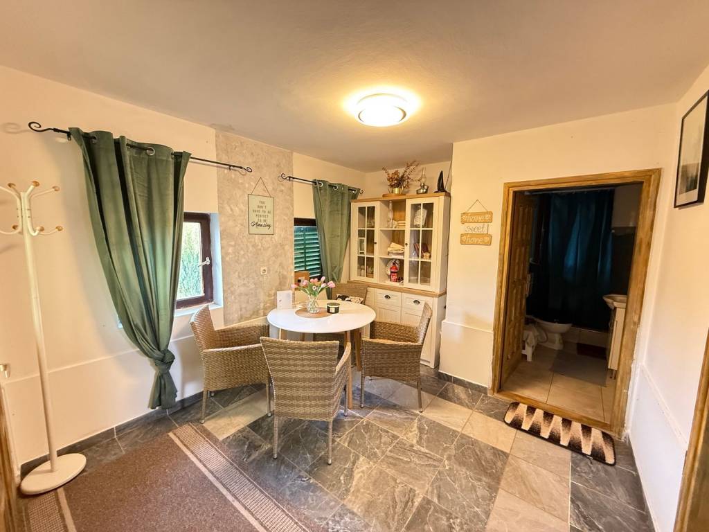 Na uređenom posjedu nalazi se velika natkrivena terasa koja pruža savršeno mjesto za odmor, druženja i objedovanje na otvorenom. Uz terasu se nalazi prostor posebno osmišljen za proslave i okupljanja, što dodatno povećava atraktivnost objekta u turističke svrhe. Gostima su na raspolaganju i sezonski bazen, jacuzzi, bilijar, stolni nogomet, roštilj, uređeni vrt i privatni parking.