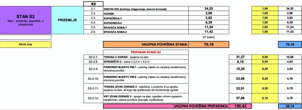 Apartment AS2 - Ground Floor - Living Area: 70.18 m² (2 Bedrooms + 2 Bathrooms) + Terrace (31 m² - SE) + Second Terrace (34 m²) + Storage Room (8 m²) + Garden (38 m²) + 2 Outdoor Parking Spaces (PM7 & PM8), Total Net Area: 108.32 m² = €355,000