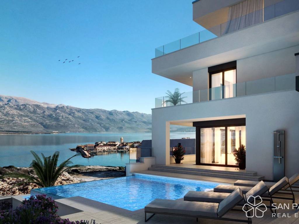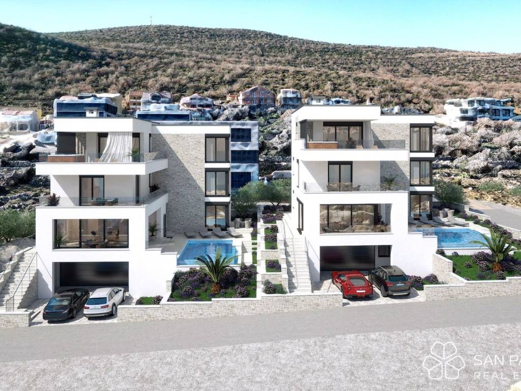Villa Paklenica2 – basement + ground floor + 1st floor + 2nd floor – living area 258 m² (4 bedrooms + 4 bathrooms) + 3 terraces + 30 m² pool with sun deck + garden + garage for 2 cars, total net usable area 355 m² on a plot of 480 m² = €2,000,000 (VAT included)