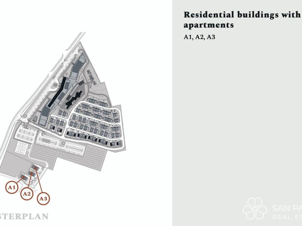 The three low-rise residential buildings are surrounded by greenery, with six units in each building, ensuring peace and privacy. The apartments are carefully designed, ranging from two-bedroom layouts to spacious duplexes. Each unit has its own terrace or loggia, modern interiors, and maximum functionality. The interior design combines contemporary elegance with Mediterranean charm, offering bright living spaces, natural light, and premium materials.