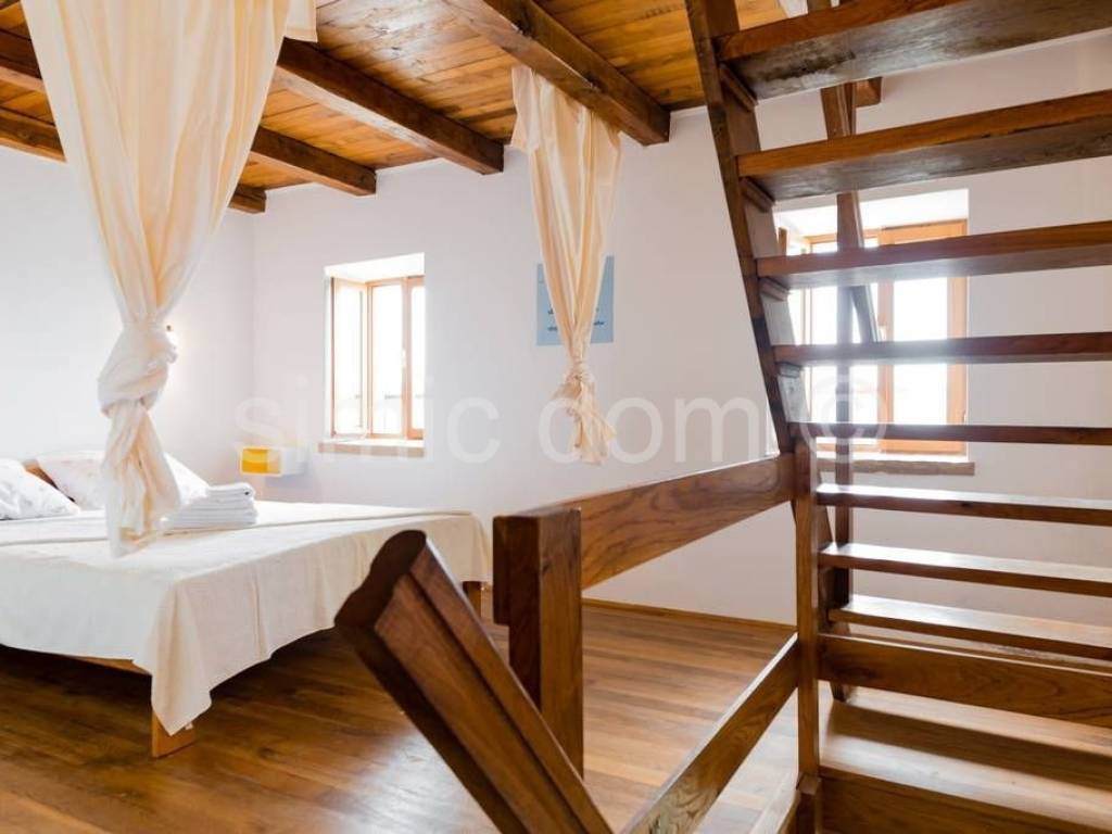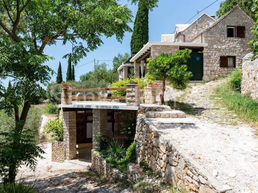 We are mediating the sale of a beautiful stone house and four apartments in a connected and functional unit, in the village of Murvica on the island of Brac. This property has a living area of 302 m2 and is located on a plot of 473 m2. It has a total of seven bedrooms and six bathrooms. The main house is spread over three floors - ground floor, first floor and attic. It consists of a living area with a kitchen and dining room, an additional living room, 2 bedrooms, 2 bathrooms and a storage room. Next to the house there are terraces with a barbecue and a beautiful view of the sea. All four apartments have separate entrances and a different structure. Two apartments are multi-storey, with the living area and bedrooms arranged on different floors - specifically, one one-bedroom and one two-bedroom apartment. The remaining two one-bedroom apartments are located on one floor. All apartments have their own bathroom and an associated outdoor space in the form of a terrace or loggia. Ownership is in order.
