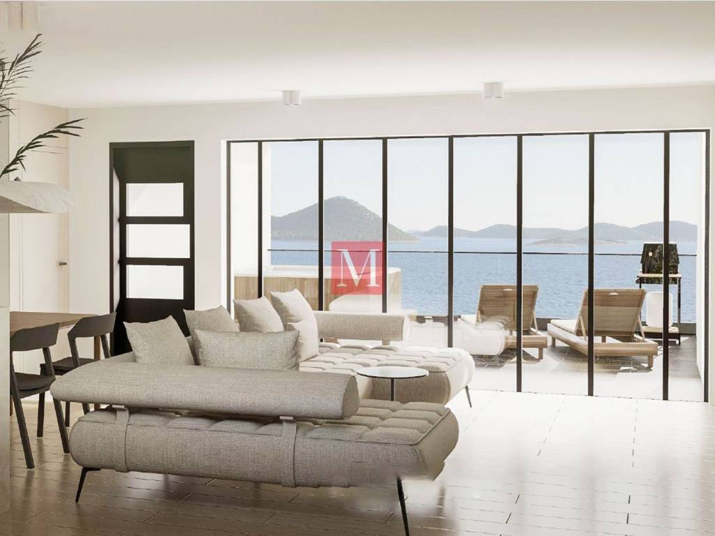 The total area of the apartment is 150 m2 with a terrace of 48 m2, and the net usable area of the apartment is 102 m2. The apartment has an outdoor parking space. All apartments have a beautiful sea view from most rooms and from the large terrace. The building is built of high quality materials in accordance with the highest construction standards. The bathrooms will be equipped with modern Hansgrohe sanitary ware. With early purchase, it is possible to make changes to the apartments according to the client's wishes. Also, with mutual agreement of the future owners, it is possible to purchase land in front of the building for the construction of a swimming pool and sauna. Excellent, quiet location only 20 meters from the sea and 4 km from the center of Pakoštane. Restaurants and beach bars are within walking distance. Popular beaches in Crvena Luka, Pakoštane and Pirovac are a 10-minute drive away. The building is under construction, scheduled for completion - December 2025. More information on personal request. No agency fee for the buyer!