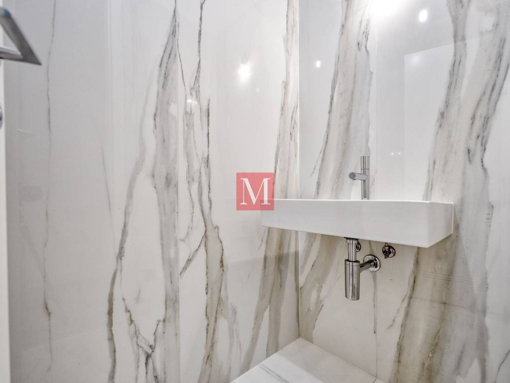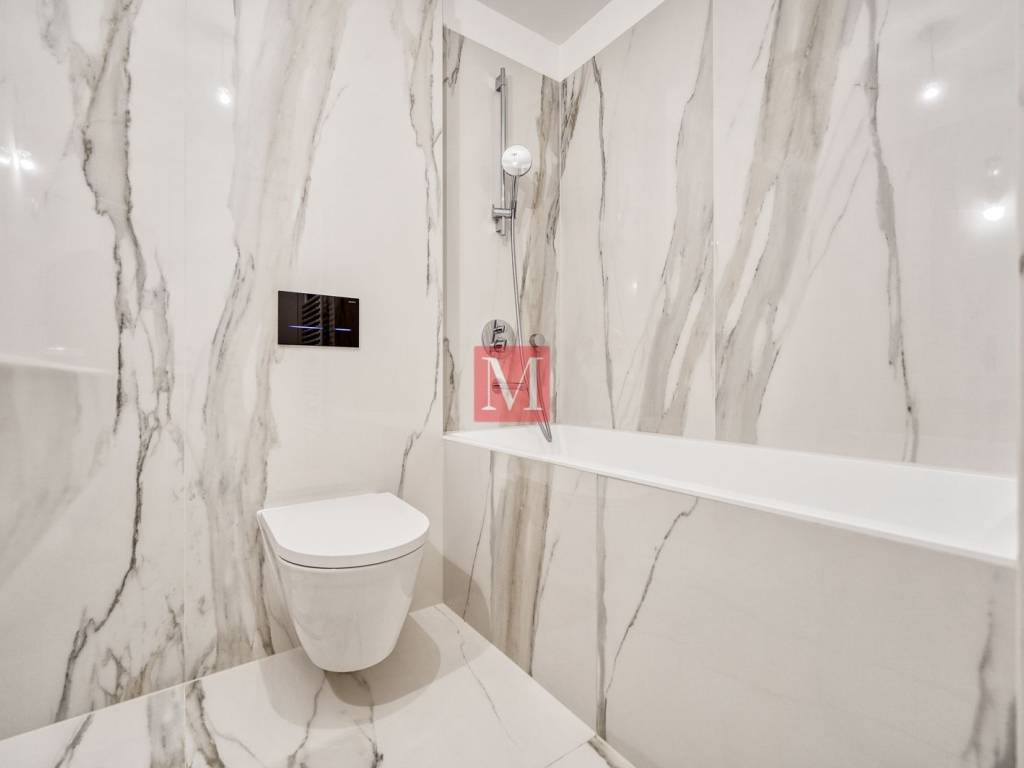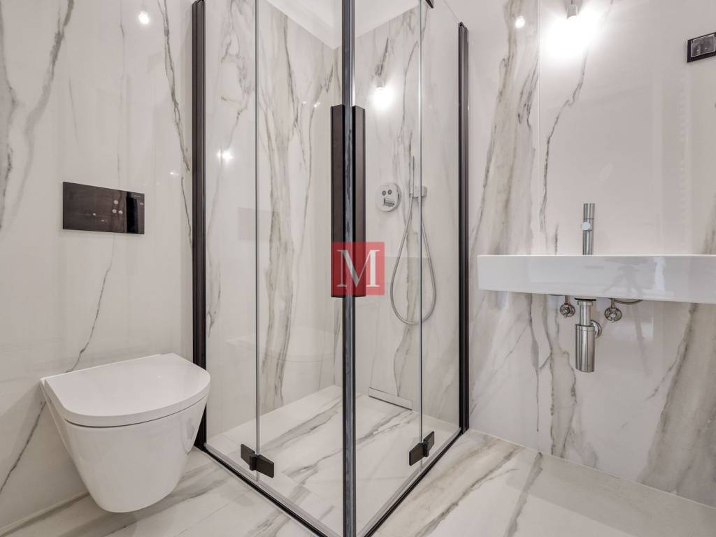 Bathroom equipment from renowned manufacturers (Kerrock, Laufen, Huppe, Axor) with high-quality faucets, bathtubs, walk-in shower with a partition made of lamistal transparent glass and wall-mounted shower channels, toilets and cantilever bidets with soft close lowering of the board. Geberit built-in cisterns are installed in all sanitary units, which are characterized by silence, hygiene and long-term reliability, with a sensor button for two-volume flushing as the only visible element, and with a special odor drain from the toilet bowl.
