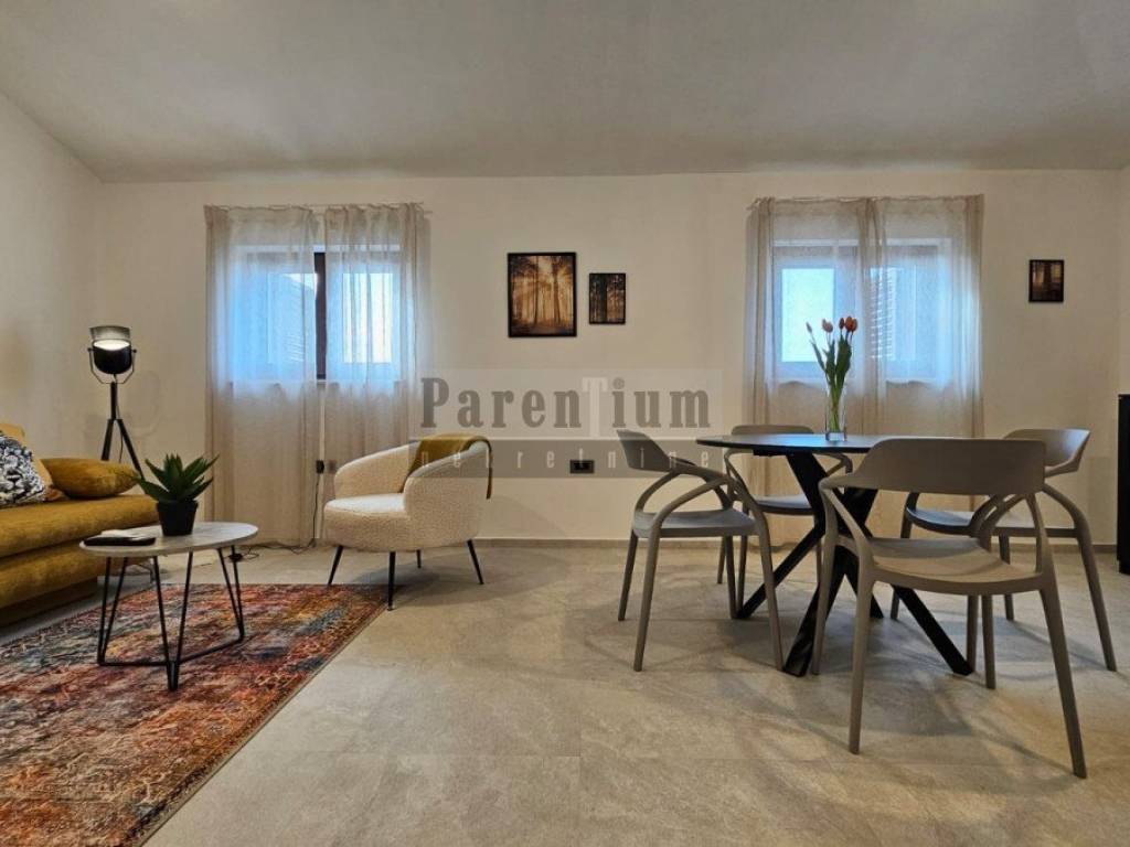 On the second floor of a residential building that is 3 km away from the sea and from the town of Porec 9 km is this apartment. What consists of an entrance hall, living room, kitchen and dining room type open space, two bedrooms, bathroom and additionaltoilet with utility room. The apartment offers an open sea view.
