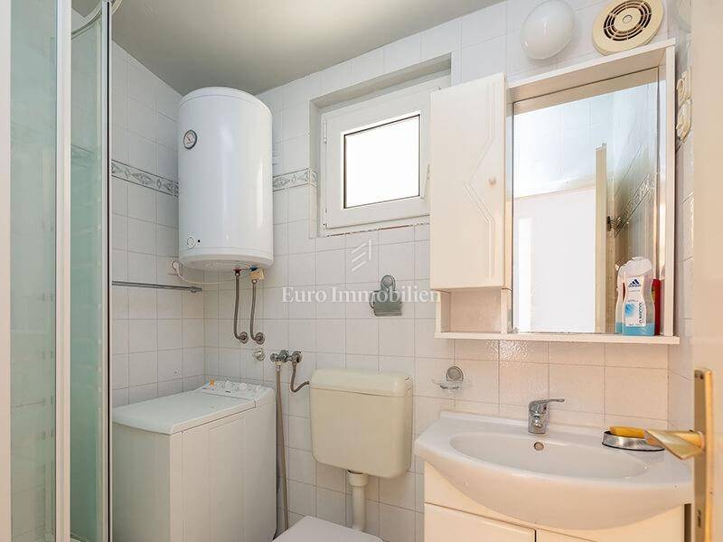 In the basement there are two garages with a total area of 36 m2 and a storage room. On the ground floor there is a two-bedroom apartment with access to a spacious terrace and a summer kitchen, while on the first floor there is another two-bedroom apartment with a spacious balcony overlooking the sea. It is fully furnished and is being sold as such.