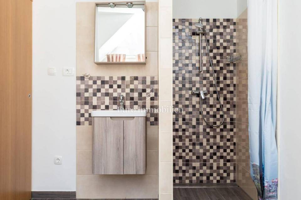Upstairs are two bedrooms, bathroom, living room, kitchenette and terrace with sea view.