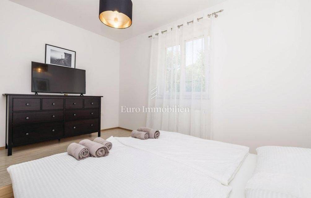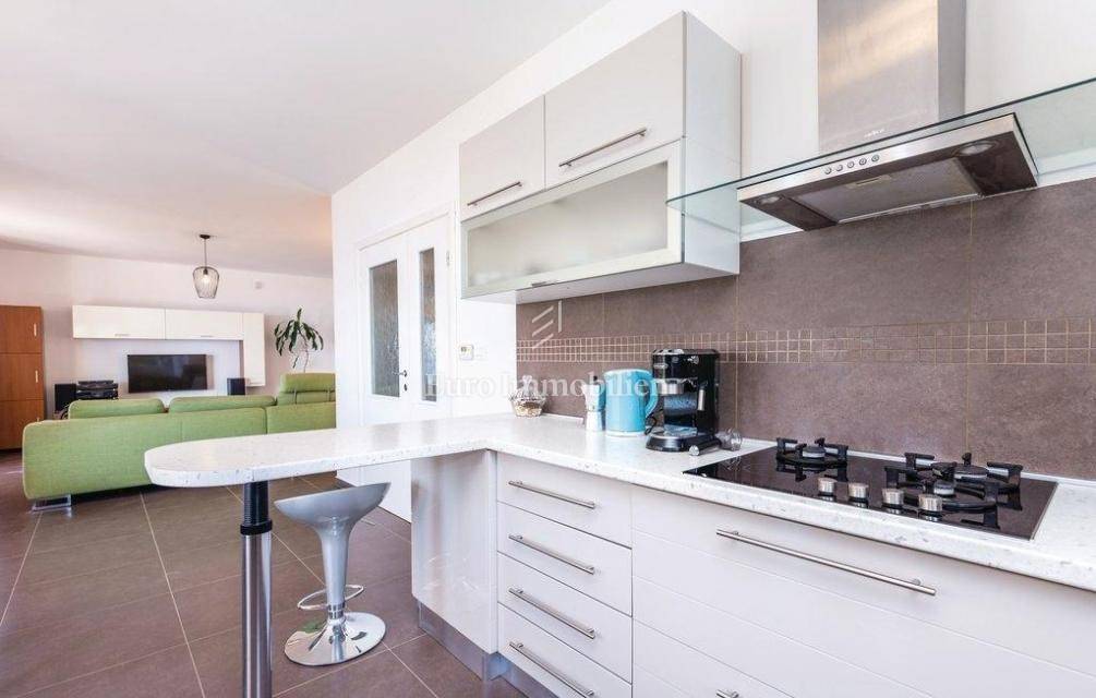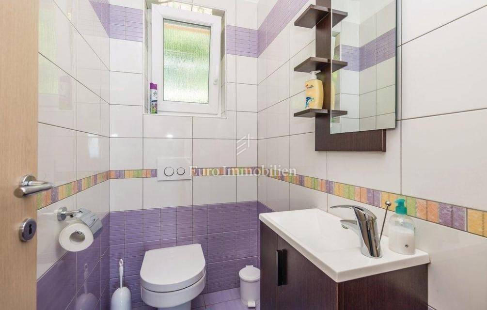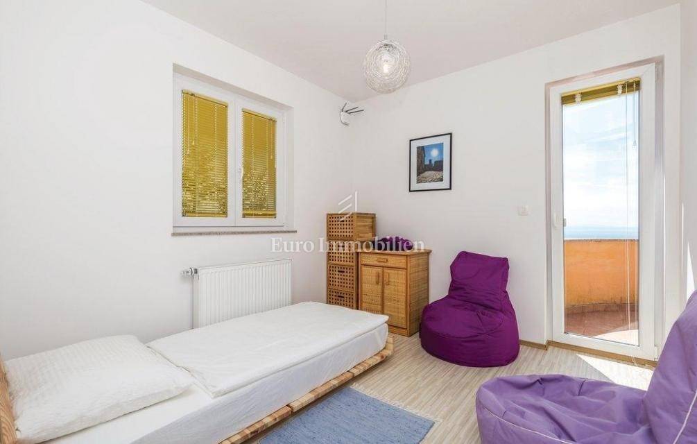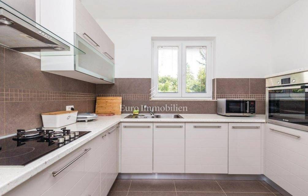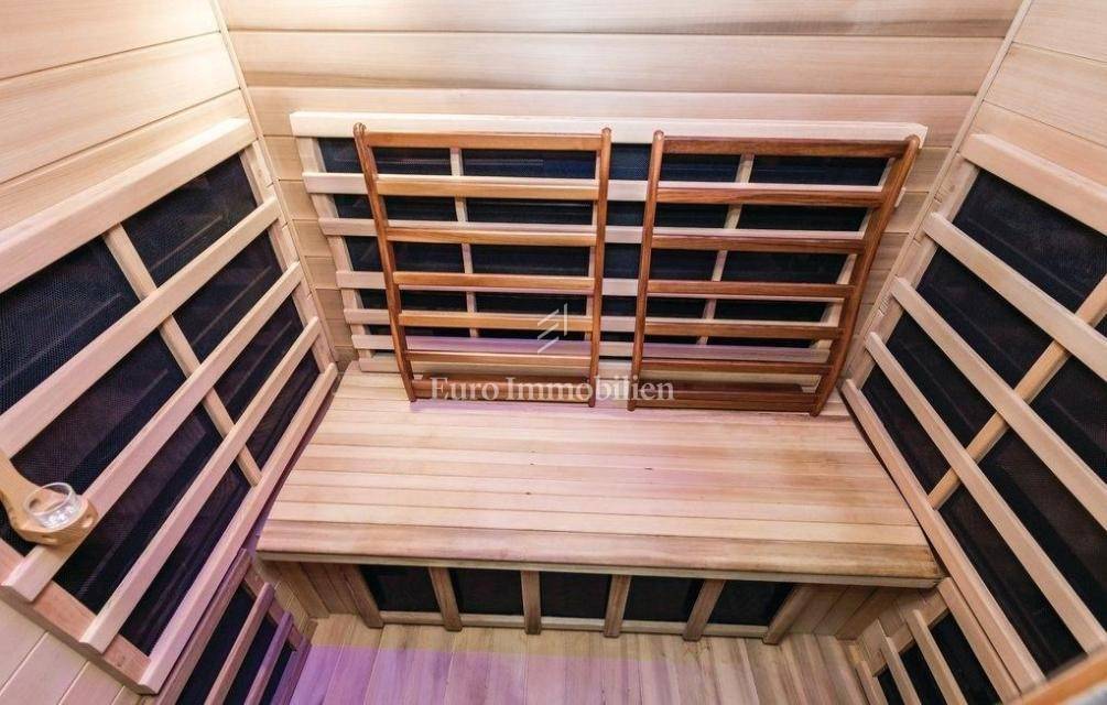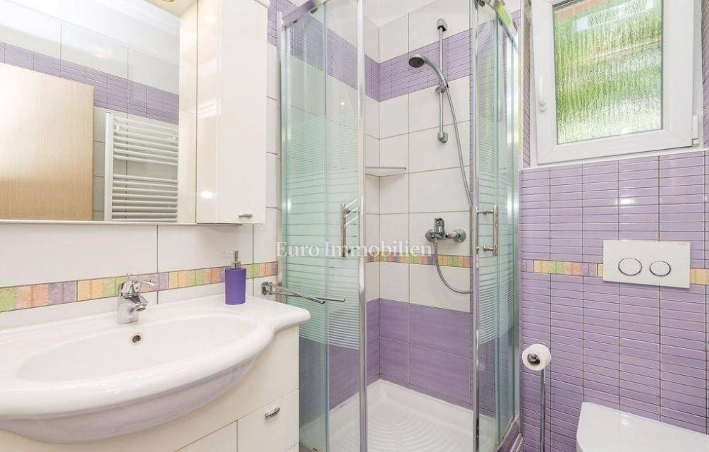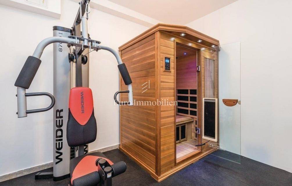 In Veprinac, above Opatija, there is this fully furnished and equipped villa with sea view, surrounded by a large garden with parking spaces, swimming pool, covered terrace with fireplace for barbecue and recreation area. The area of ​​the villa is a comfortable 192 m2, with 5 bedrooms (5 bedrooms + living room). It was built in 2011 and refreshed in 2021. Heating and cooling is provided by air conditioning, radiators (central heating) and underfloor heating, and has a chimney. Sold with furniture. The property is equipped with: automatic night lighting, smart locks on the gate and front door, automatic watering under the grass, cameras and alarm, study, sauna and fitness in the basement, two bathrooms with whirlpool tub, two covered terraces and one balcony, pool area 32 m2, with a roof and remote control, and with a mini tennis / badminton court. Quiet location and environment with open sea views, comfortable and fully decorated interior, proximity to Opatija, the sea and many other facilities are just part of this beautiful property!