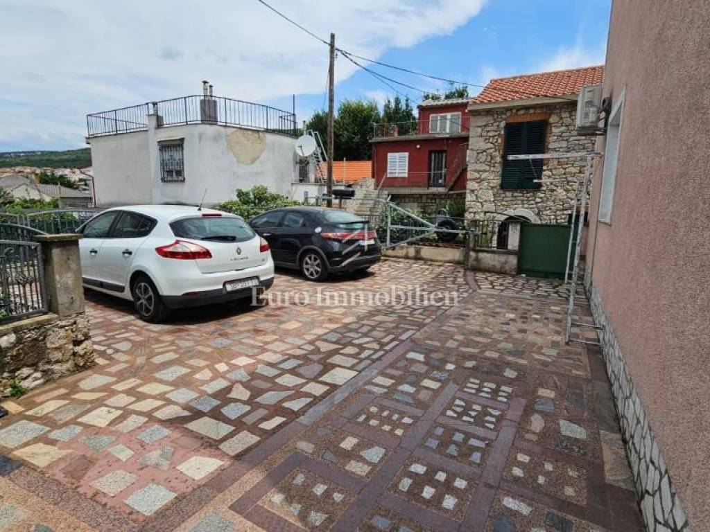 Selce real estate - a house with three fully equipped apartments for sale in the center of town. It is unique that the house has five parking spaces inside the landscaped yard.