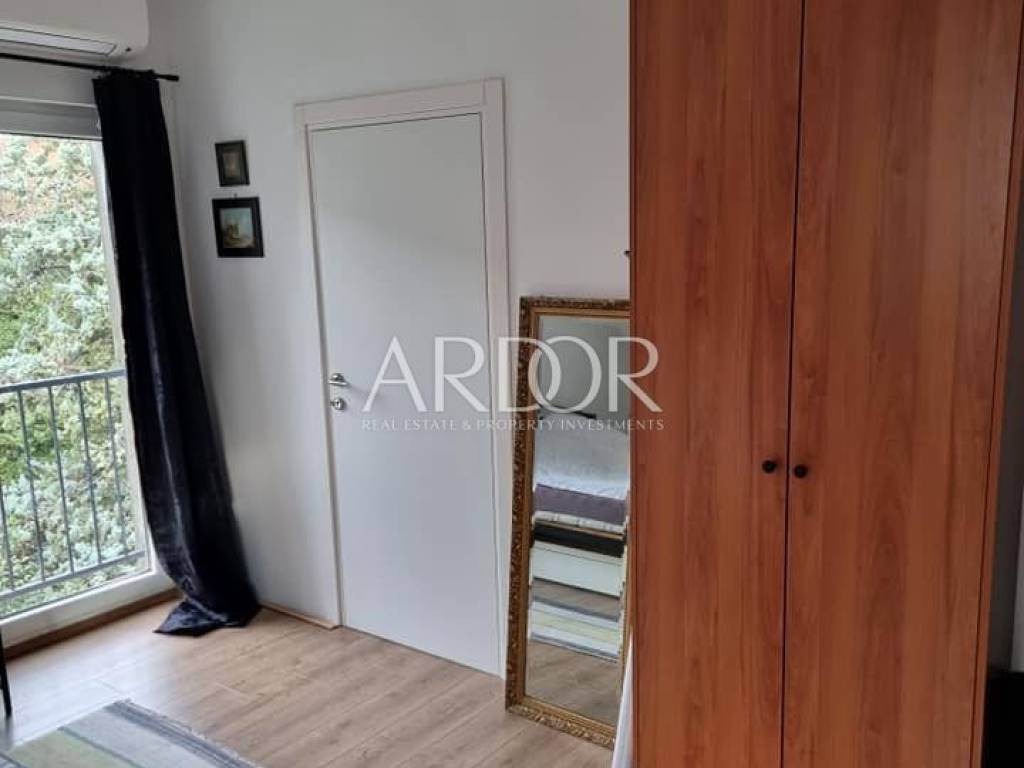 The building has two entrances, and due to the terrain configuration, the apartment is situated on the second floor from one side and on the fourth floor from the other. The apartment has a total floor area of 100 m², although it is officially registered as 70 m² due to attic regulations. It consists of a spacious living room that also serves as a dining area, a kitchen, one bedroom, a balcony, and includes one private parking space. Heating is provided via an air conditioning unit, with the option of wood heating.