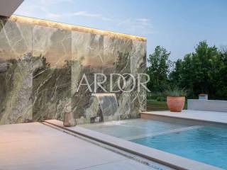 Located in a quiet and picturesque location near Grožnjan, this elegant designer villa offers a unique opportunity to live in the heart of Istria. Set on a spacious 2,170 m² plot, surrounded by nature and greenery, the villa offers panoramic views from all sides, creating the perfect place to relax and enjoy privacy.