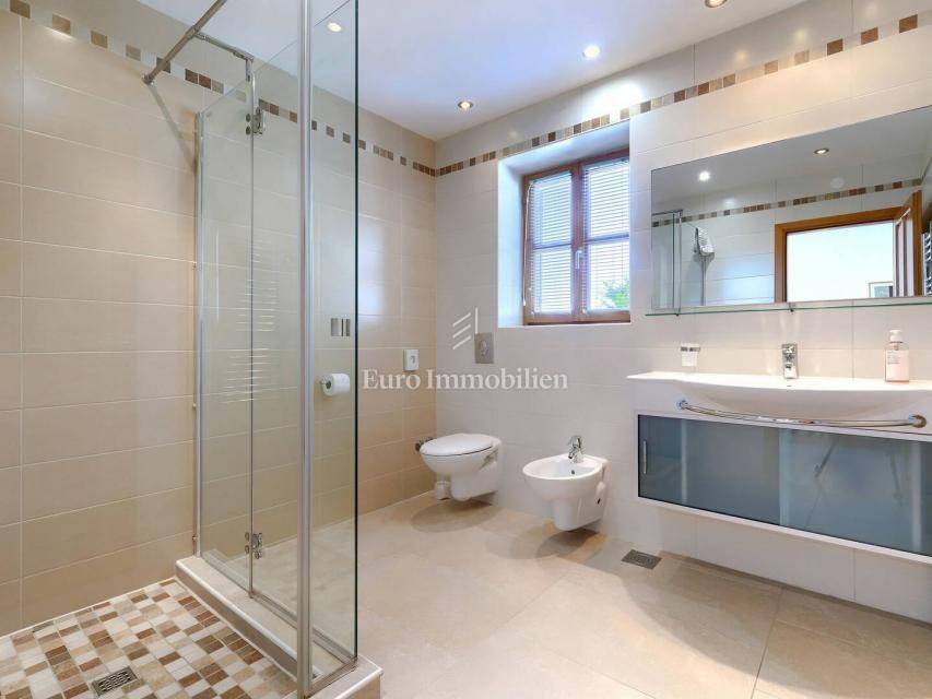 A beautiful detached house of 250 m² in a quiet part of Buje, built in 2010, offers five bedrooms and a spacious 1,270 m² plot with southwest orientation. The landscaped garden with a pool, barbecue, terrace and balcony provides a lovely view of the sea and nature.