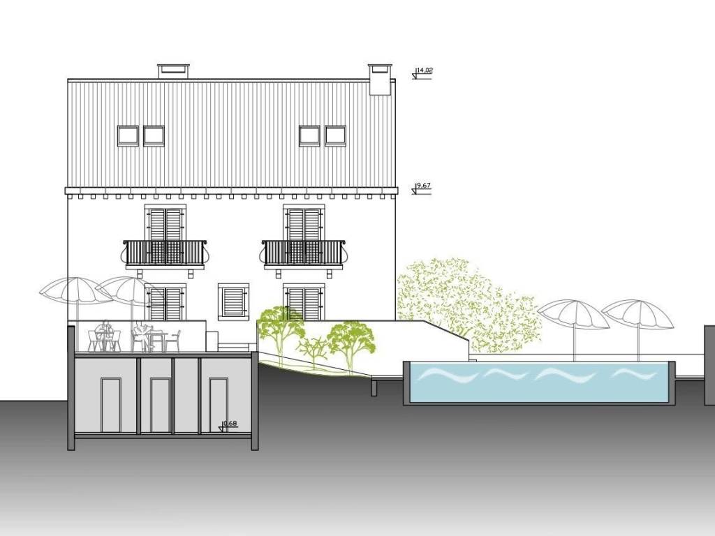 Na prodaju je parcela s projektom na vrhunskoj lokaciji, prvi red do mora u centru Vele Luke na Korčuli. Projekt se odnosi na rekonstrukciju postojećeg objekta na parceli površine 645 m2. Pristup parceli je s istočne strane preko glavne ulice i zapadne strane preko sporednog puta. Parcela ima kompletnu projektnu dokumentaciju i građevinsku dozvolu za glavni i pomoćni objekt hotela, a s obzirom da se nalazi u stambenom području Vele Luke, može se prenamijeniti u stambeni objekt. Plaćeni su svi komunalni i vodni doprinosi i ostale pristojbe. Izvršena je prijava za početak građenja. U blizini su javna plaža i lječilište.