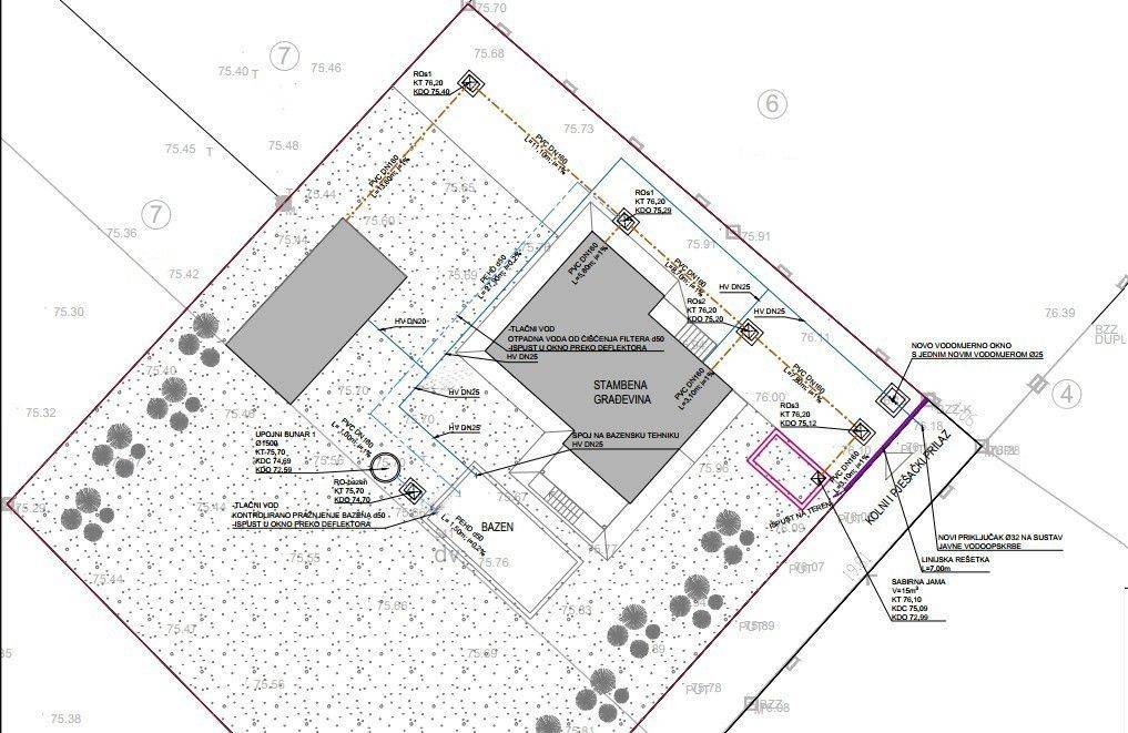 Na prodaju građevinsko zemljište s projektom i građevinskom dozvolom površine 1420 m2.