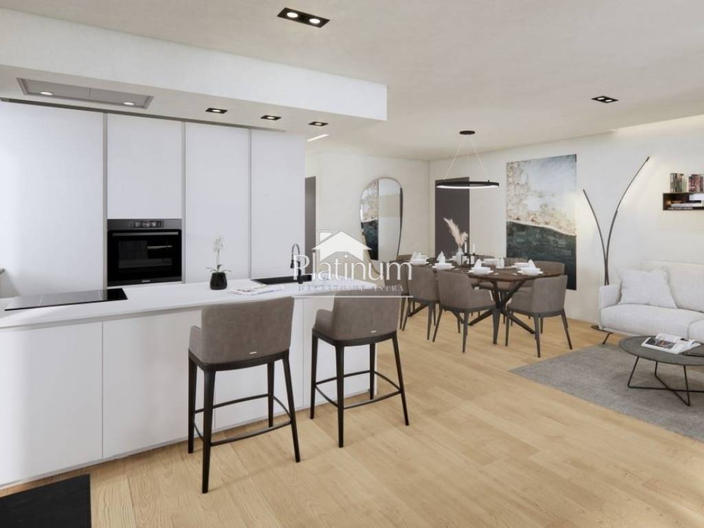 Istria, Rovinj In the very center of the city, in an attractive location near all facilities and in the immediate vicinity of the most beautiful beaches, this wonderful luxury apartment under construction is for sale, located on the ground floor of a modern building. The apartment consists of 121.83 m2, from which there is access to a garden of 40 m. It has two bedrooms, each with its own bathroom and dressing room. The kitchen, dining room and living room face the daylight, which gives the apartment additional size and spaciousness. The apartment also has a storage room and a parking space in the garage. It is sold unfurnished except for the bathrooms and floors, which will be completely decorated. The building in which the apartment is located is being built with the most modern technology and the most modern means. Feel free to contact us for more details. Platinum Real Estate Istria Mobile: +385959003151 E-mail: info@platinumistra.com