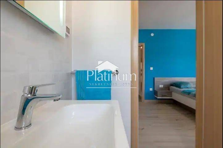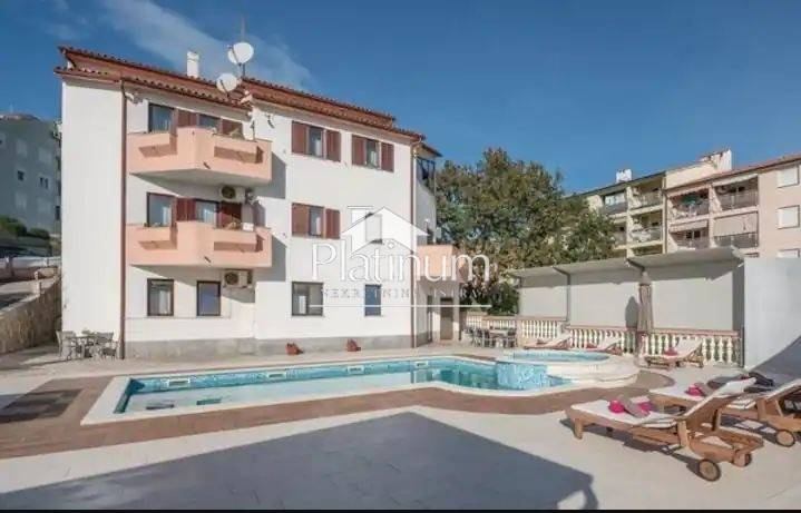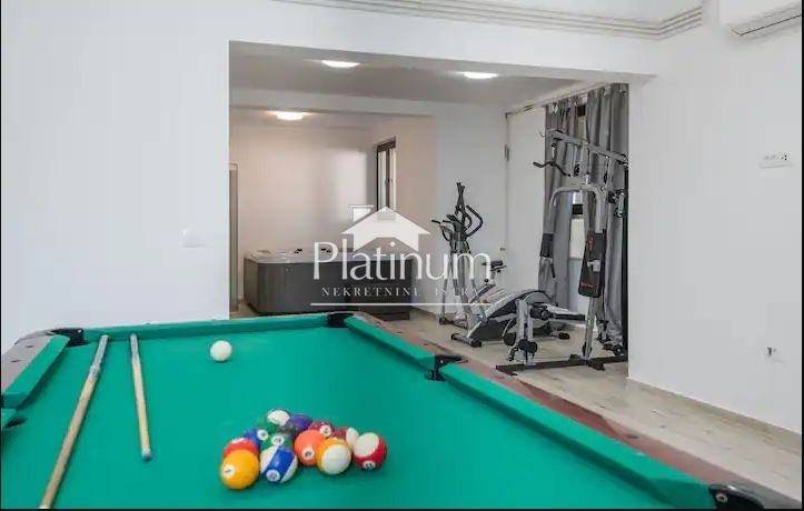 A house for rent in Nova Veruda is for sale, which can accommodate 16 people in eight rooms, each of which has its own bathroom, television, air conditioning and terrace, and consists of a ground floor and two floors. Next to the house there is also a tavern where you can prepare various dishes and hang out. The house also has a garage for six cars. Additional facilities in the house include a sauna, a fitness room, billiards and a jacuzzi. The yard of the house is dominated by a beautiful swimming pool with a sunbathing area and deckchairs, and on the side a landscaped lawn with a volleyball court. In addition to air conditioning for coolin