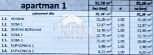 Banjole, apartment for sale on the ground floor of 91.58 m2 consisting of a hallway, three bedrooms, two bathrooms and a large living room with kitchen. The apartment has a part of the yard, a swimming pool and a parking space The building is under construction, and the expected completion is in 2024. If you want to invest money in a quality property for rent or your own residence, this is the opportunity for you. There is no real estate transfer tax of 3%. contact 00385951987708