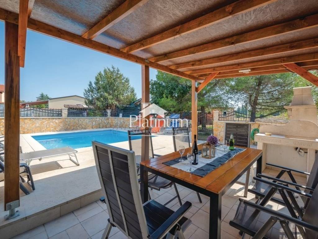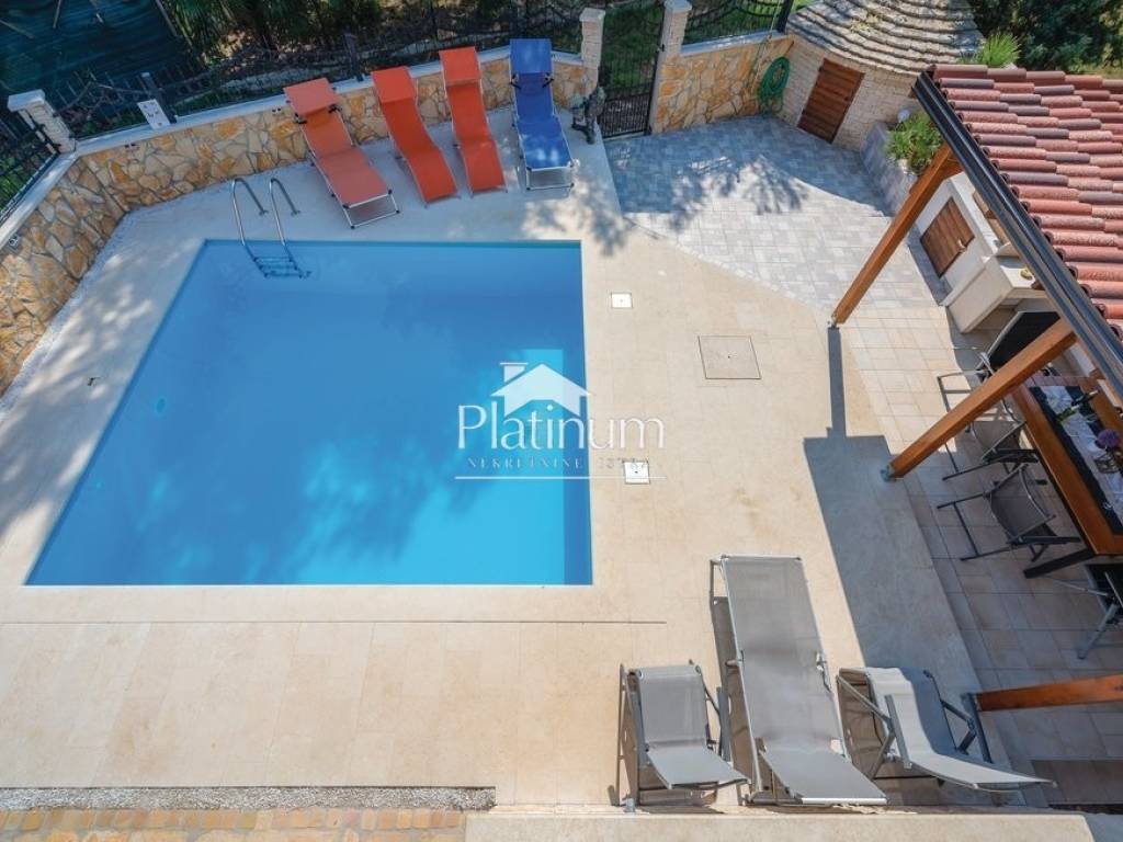Near Fažana, only 500 m from the sea, this beautiful apartment house is for sale in a quiet environment, which consists of four separate apartments. Upon entering the yard we have three parking spaces, and in the extension there is a common entrance where on the ground floor there are two apartments consisting of a bedroom, a bathroom and a kitchen area, dining room and living room from which there is access to a covered terrace. From the ground floor we go up to the first floor, where there are two more apartments that are designed in the same way as the one below. It is sold furnished. At the back of the house, next to the green belt, there is a swimming pool with a sunbathing area, a covered area with benches and a brick grill. Heatin