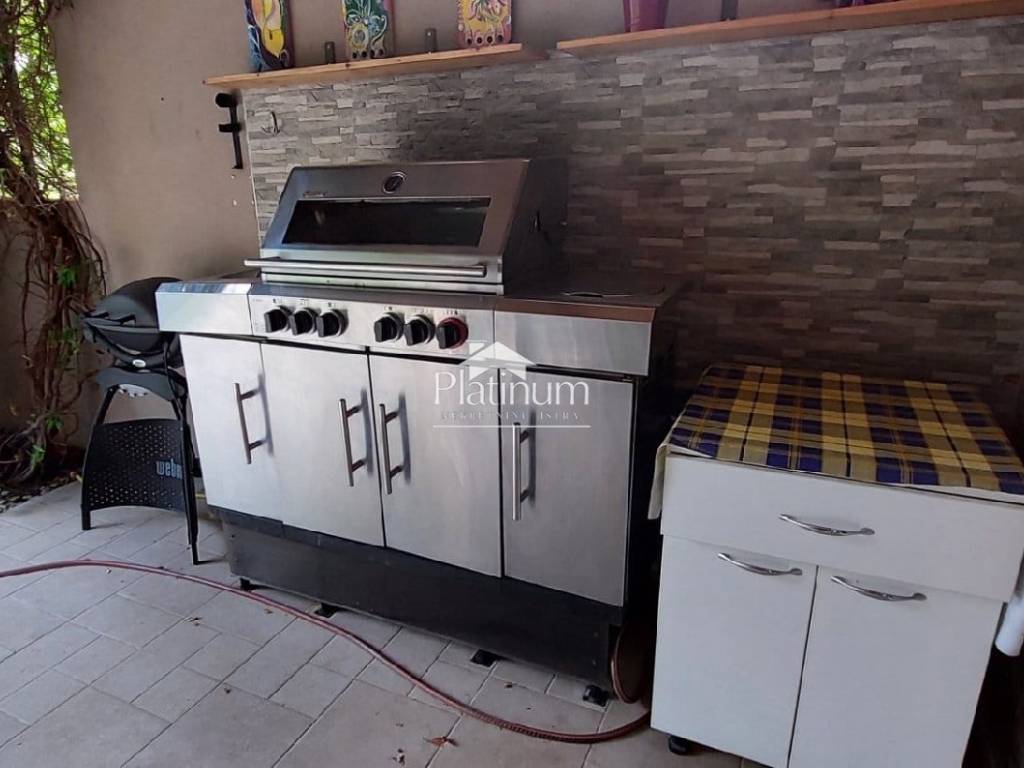 I am selling an apartment in a newer building on the ground floor with a garden, summer kitchen and parking space. The apartment is sold fully furnished, used only for a few days in the summer. It consists of three bedrooms, a living room with a kitchen and dining room, a bathroom, a terrace, a garden of 80 m2 with a summer kitchen with water and electricity, a summer house and a storage room of 3 m2. Air conditioning Automatic garden watering Separate entrance Info on 00385 91 924 9486