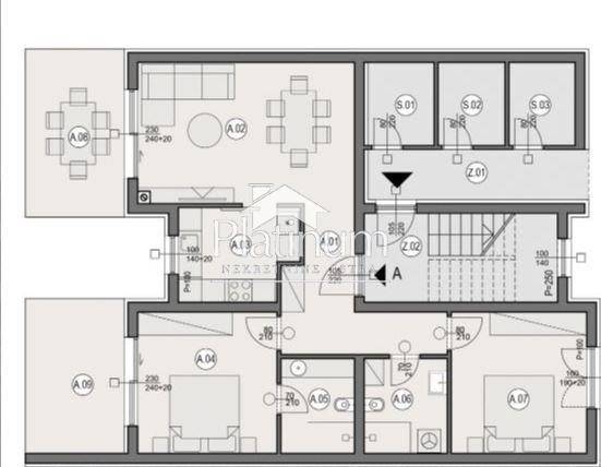 Only a few minutes by car to the center of the city, this luxury apartment is for sale in the beginning of construction on rented land. The apartment consists of an entrance hall with a wardrobe, a living room with a kitchen and dining room, two bedrooms, two bathrooms and two covered terraces. The area of the living space is 72.37 m2, and with terraces 93.66 m2. The apartment has two parking spaces, a storage room and a garden, and they are calculated according to the coefficient. Heatin