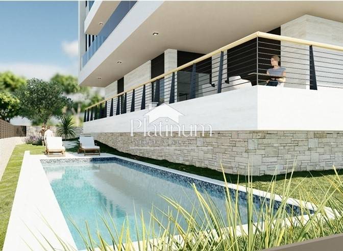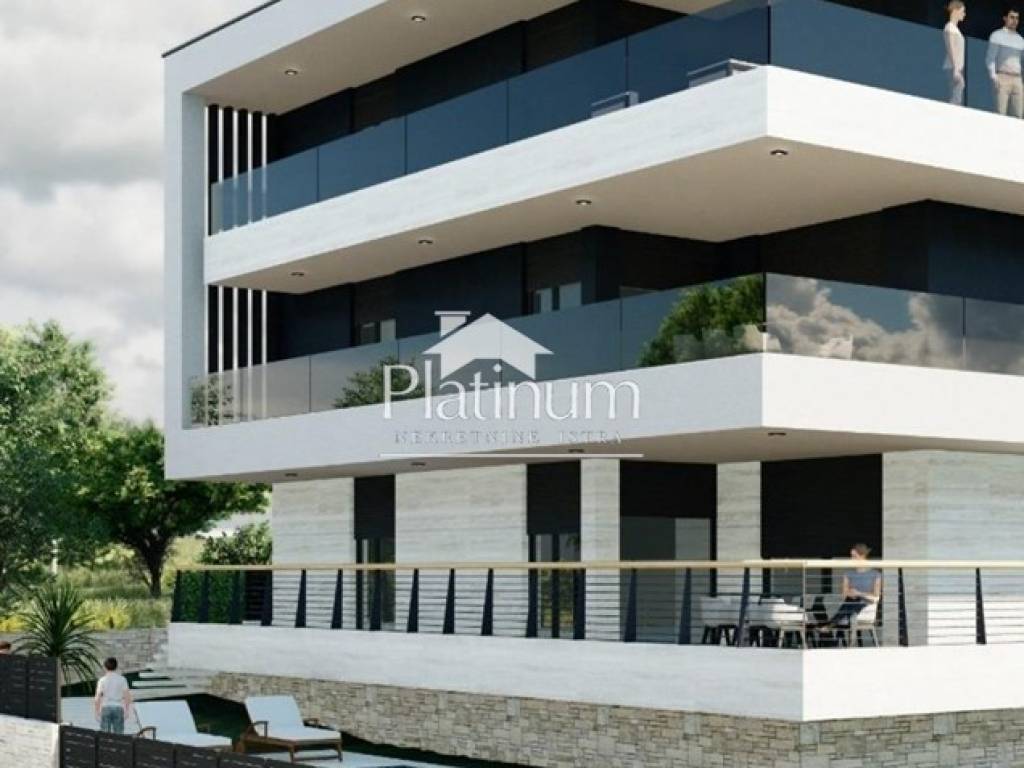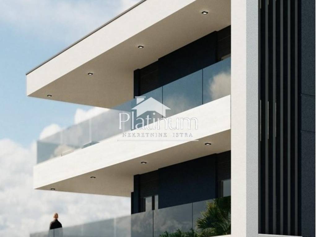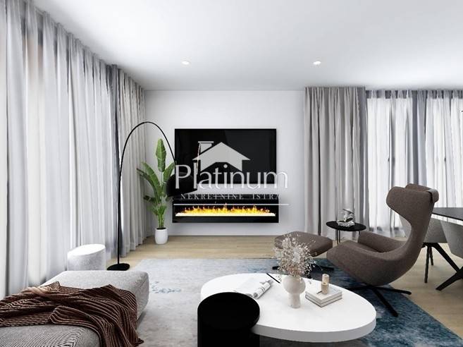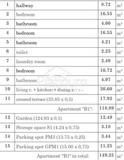 In a quiet part of Medulin, further from the sea, is this luxury apartment in a building with three apartments and a basement garage. The apartment on the high ground floor consists of an entrance hall, three bedrooms with private bathrooms, a separate toilet, a laundry room, a living room with kitchen and dining room, a covered terrace, a garden, a storage room in the basement, one garage and one outdoor parking space.
