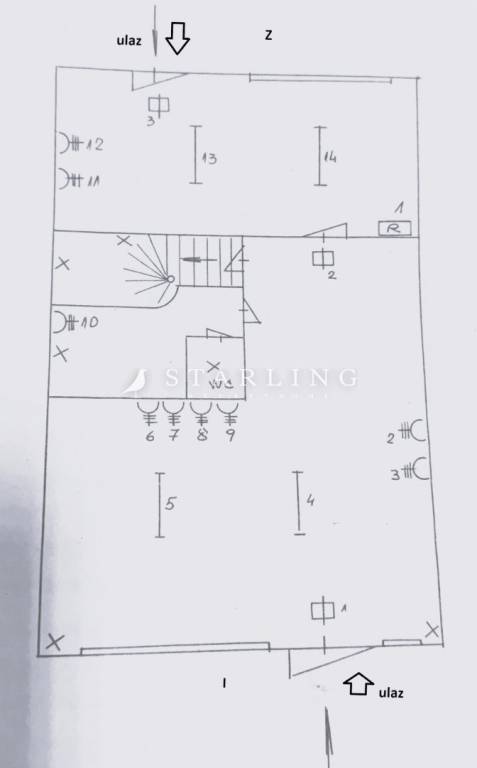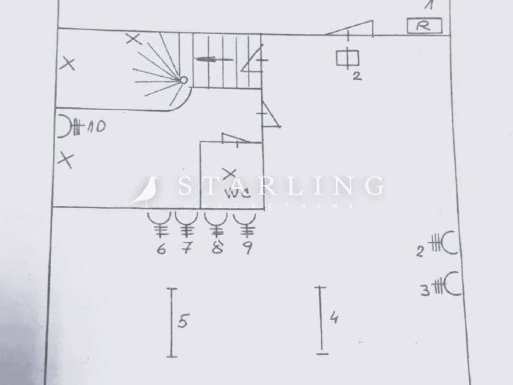Prizemlje se sastoji od dvije open space prostorije koje dijeli hodnik i wc-a.