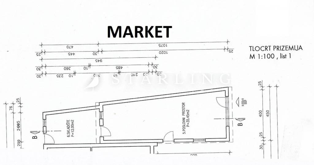 The first commercial space on the ground floor, measuring 47.45 m2, consists of the main space and a warehouse. He is on a long-term lease of the Mini Market for the next 5 years, and as such he realizes secure rental income and return on investment.