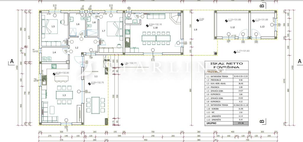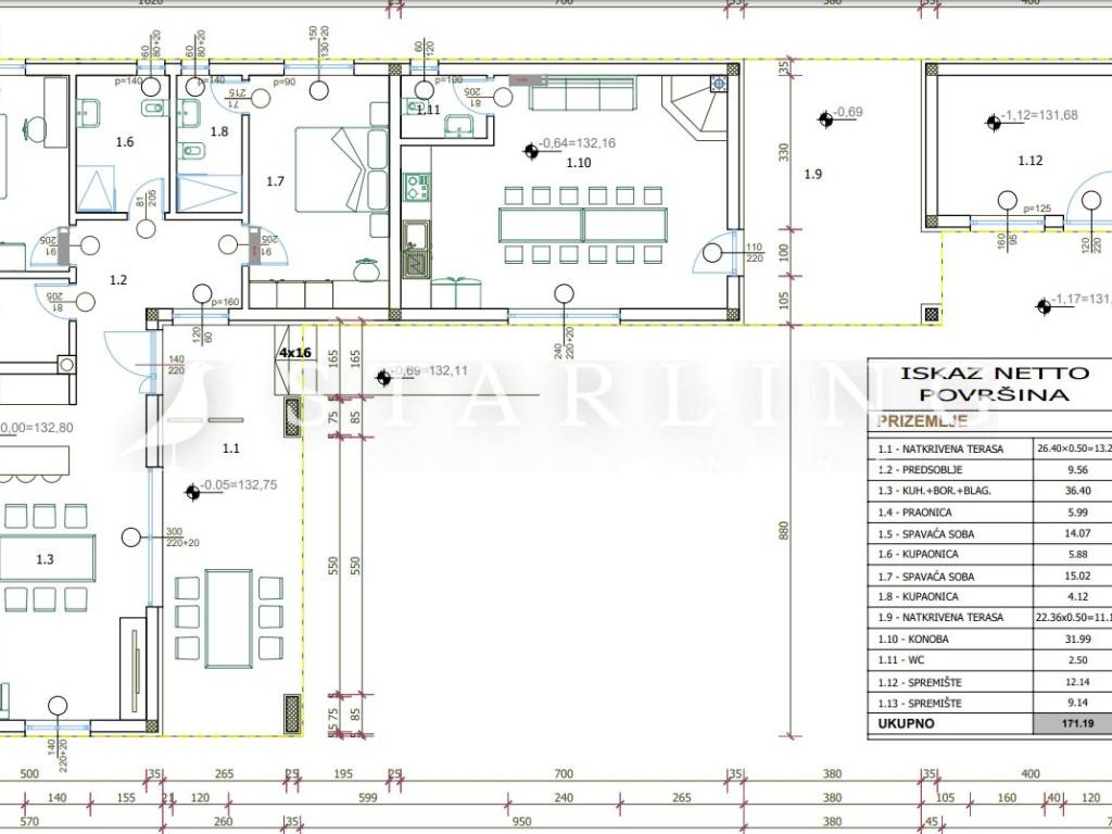 Prodajemo građevinsko zemljište s pravomoćnom građevinskom dozvolom za Vilu veličine 171 m2 na zemljištu veličine 862 m2 u Peruškima.
