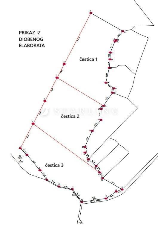 Zemljište se sastoji od 3 parcele, od kojih je svaka površine 12.872,00 m2.