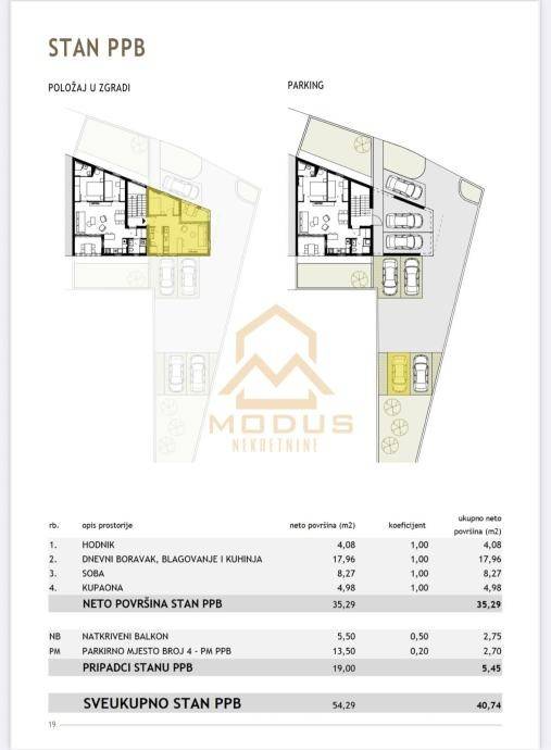 Ukupna površina = 54.29 m2 (obračunski: 40.74 m2)